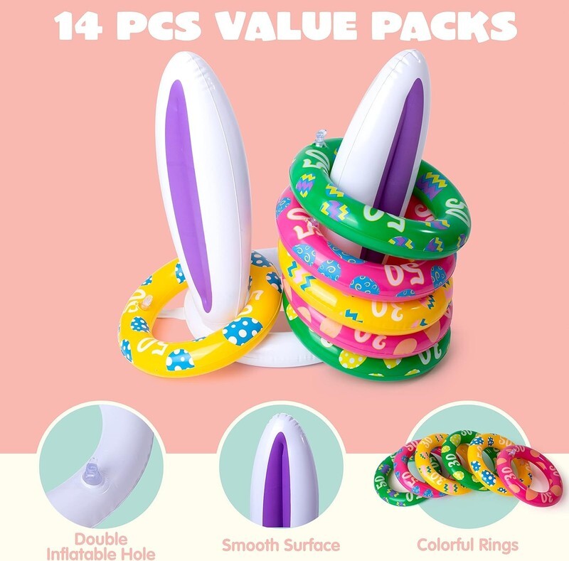 Easter Inflatable Bunny Ears Ring Toss Game(2 Set 12 Rings)