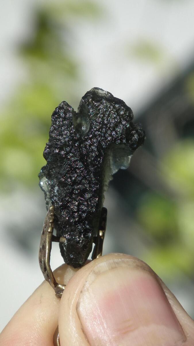 Genuine raw Moldavite pendant Bronze bail