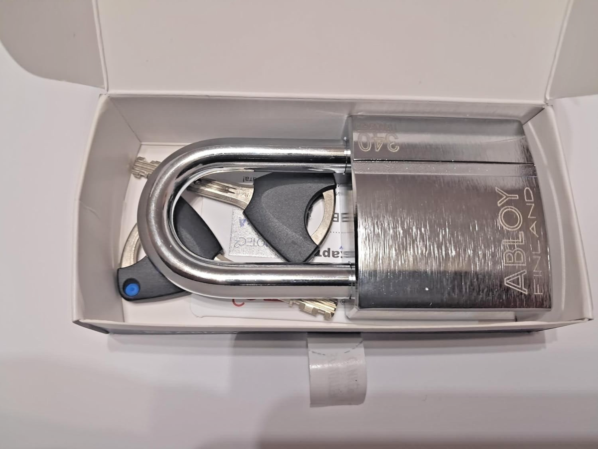 About this item HIGH SECURITY: Features PROTEC2 cylinder technology with rotating detainer disc mechanism for exceptional pick resistance and key control CONSTRUCTION: Stainless steel body and hardened boron steel shackle provide superior protection against cutting and corrosion Body Width 57mm, Shackle clearance 50mm, Shackle diameter 10mm KEY SYSTEM: Protec2 Includes two keys with sophisticated design that prevents unauthorized key duplication Body :Chrome on hardened steel Shackle: Boron steel