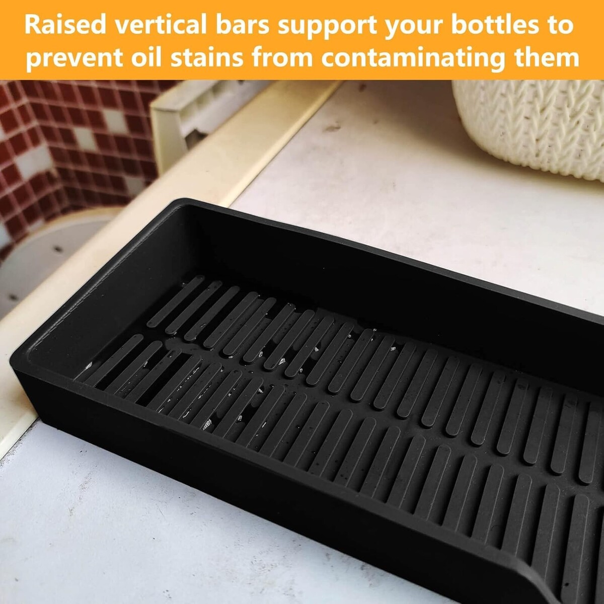Applicable Curved Surface: Crafted from flexible silicone, the shelf can be effortlessly bent to fit your unique kitchen contours. The bottom stripe design increases friction, directing dirt away from your condiments.