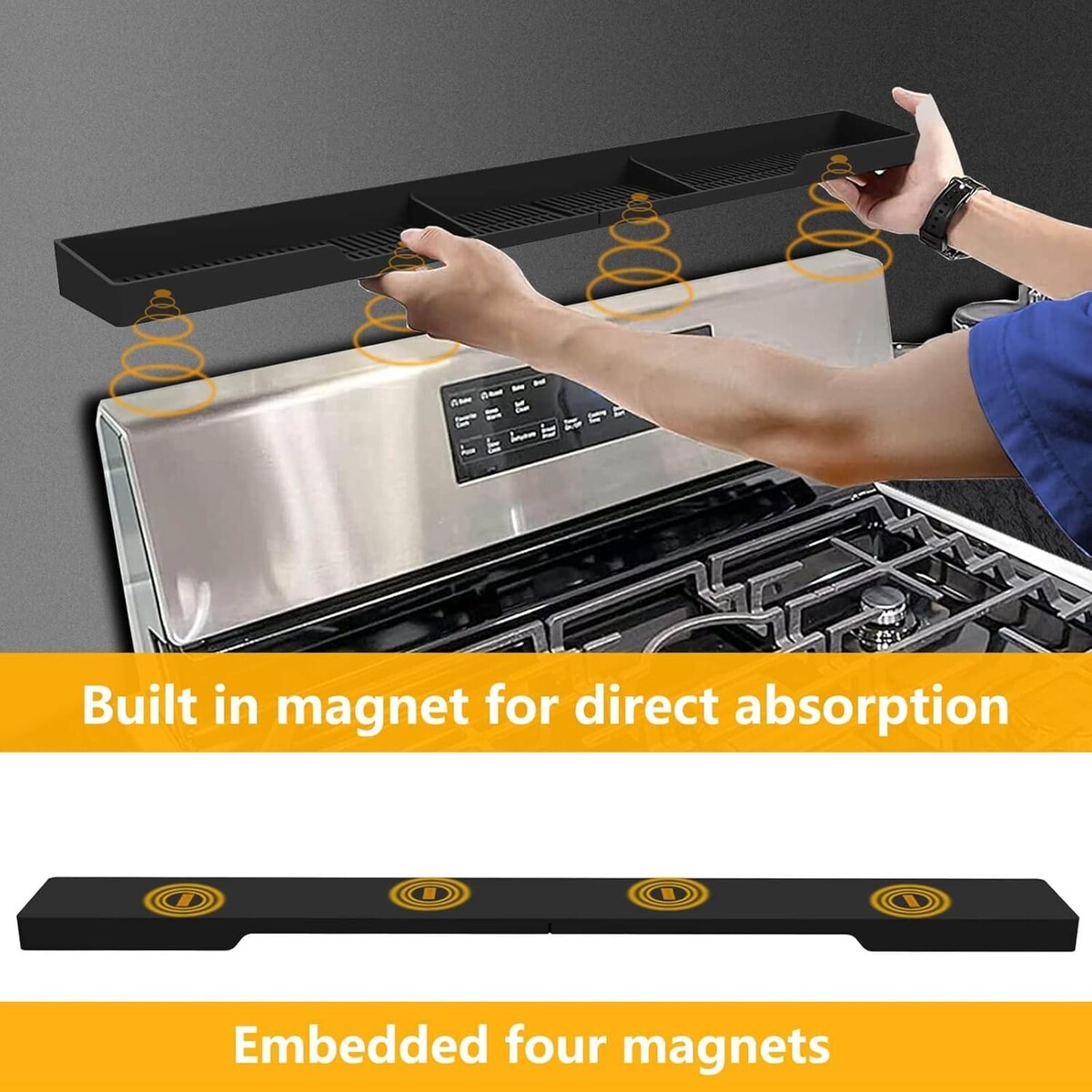 Easy to Use: Equipped with multiple magnets, our stove top shelf effortlessly attaches to the top of your over shelf without additional operations required.