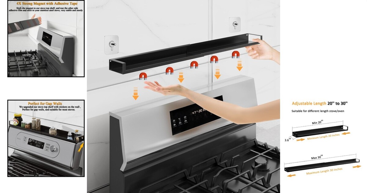Effortless Magnetic Stove Top Shelf - Adjustable 15-30” with Protection Guards