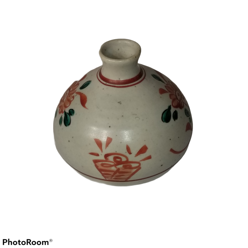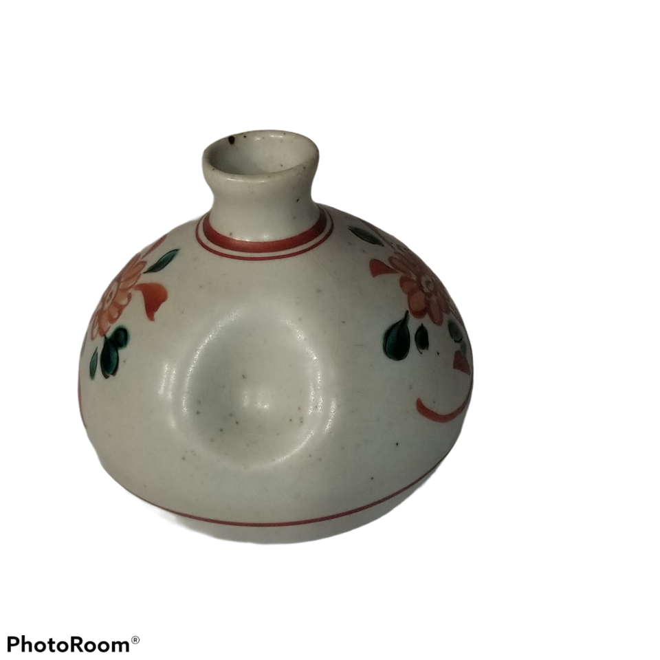 Vintage Chinese / Japanese 4" Clay Bud Vase Hand Painted Floral see Makers Mark