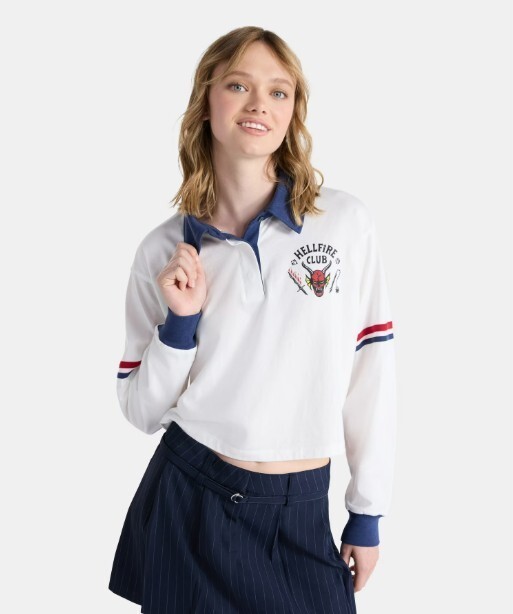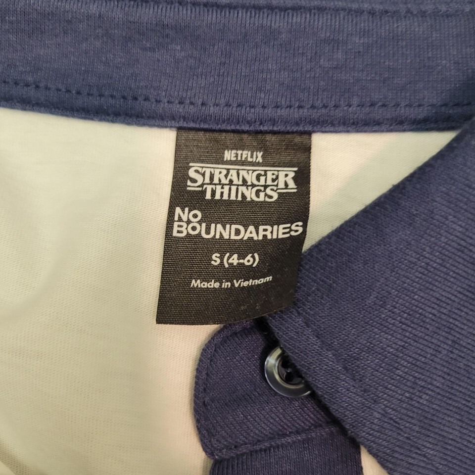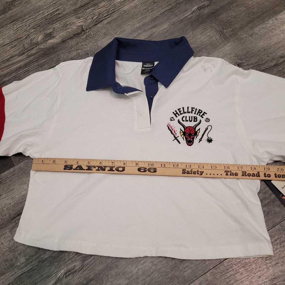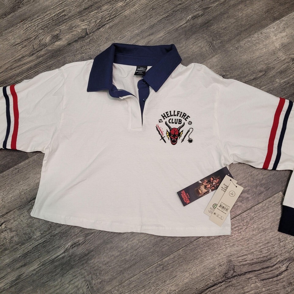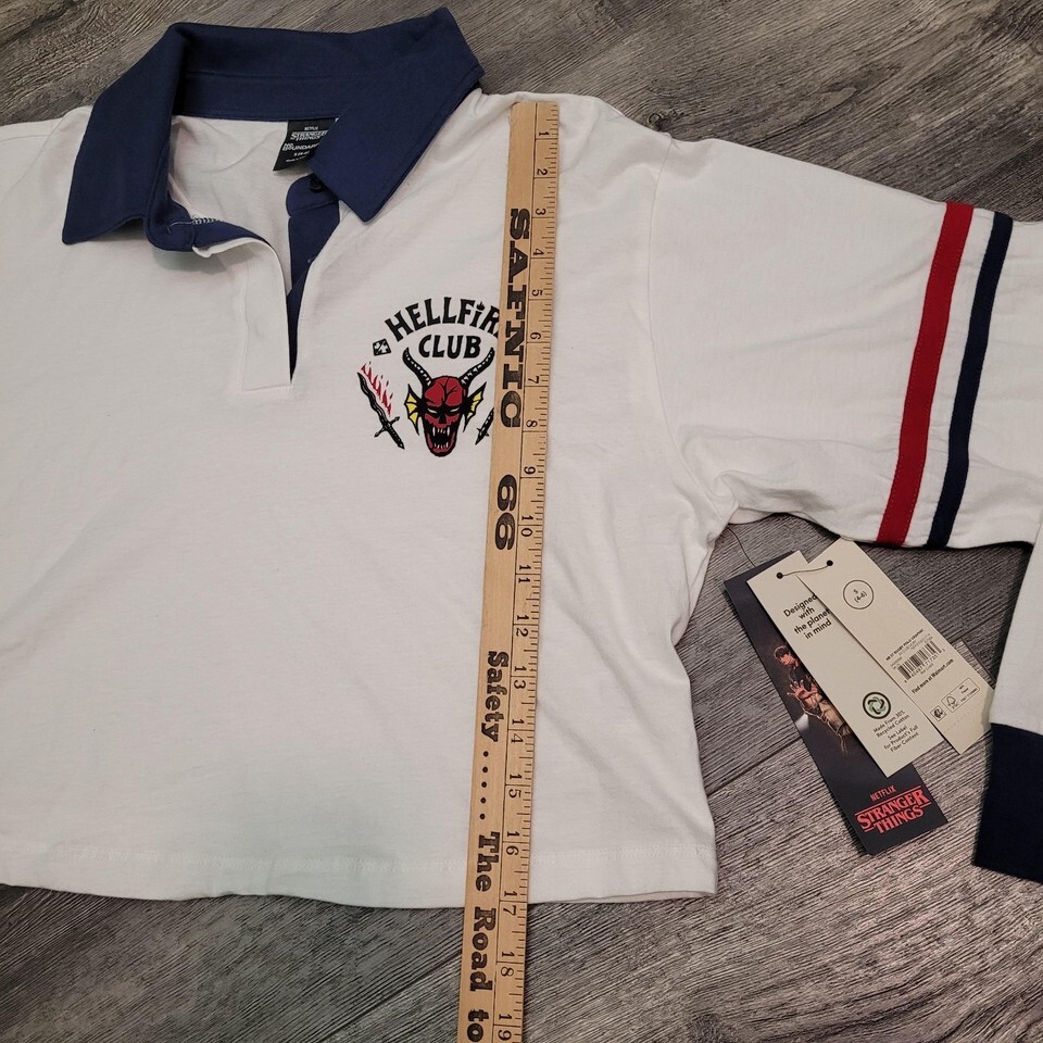 New Netflix Stranger Things Women's Midriff White Cotton Shirt Rugby Polo Sm 4-6