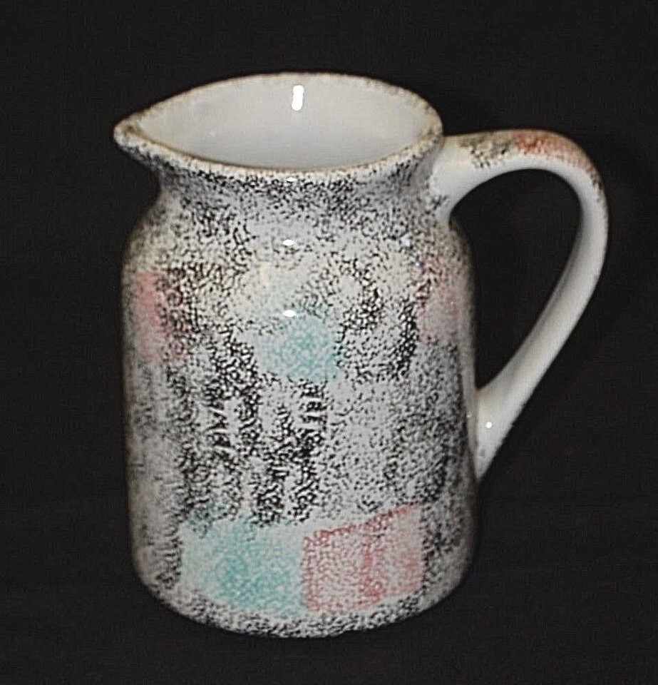 Guyroc Speckled Sponge Pitcher Multi-Color Ceramic Pottery w Abstract Designs