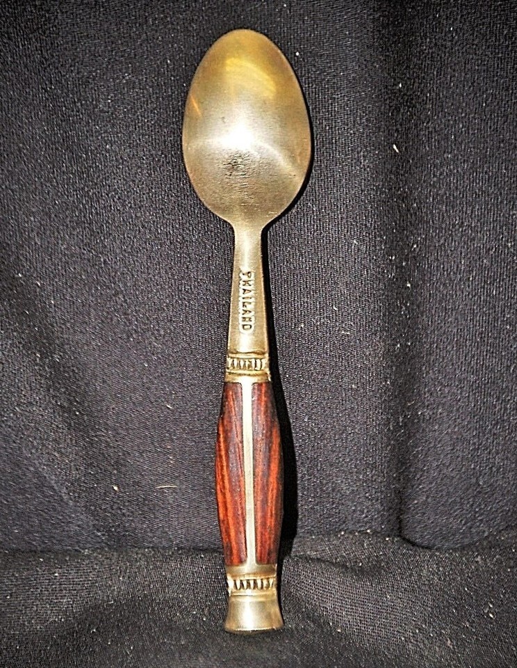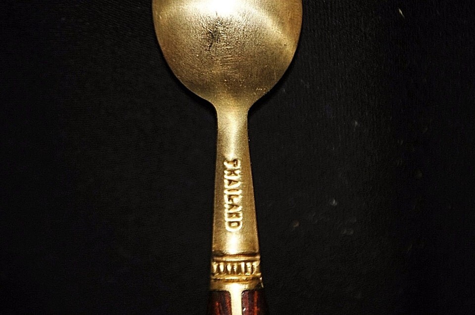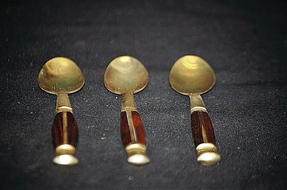 Asian Brass Demitasse Dessert Spoons Rosewood Handle Thailand Vintage Set of 3