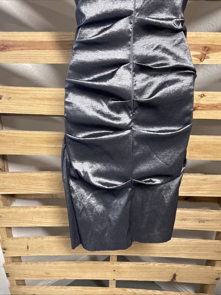 Vintage Sally Sleeveless Rouched Gray Cocktail Dress Woman's Size M KG JD