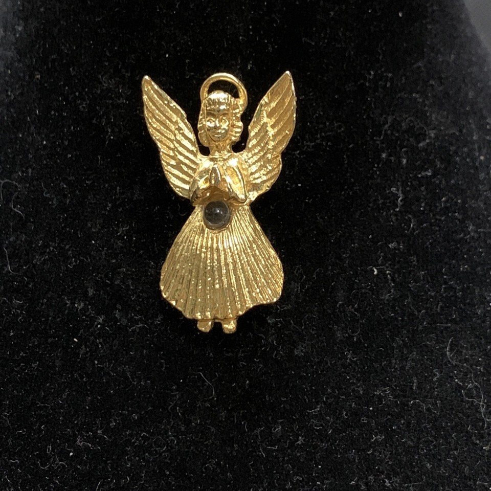 Vintage Gold Tone Christmas Xmas Holiday Angel Pin Brooch Praying Religious KG
