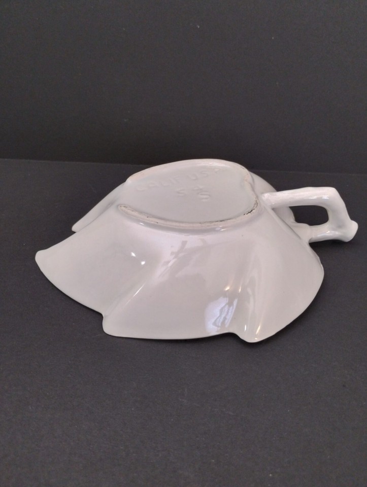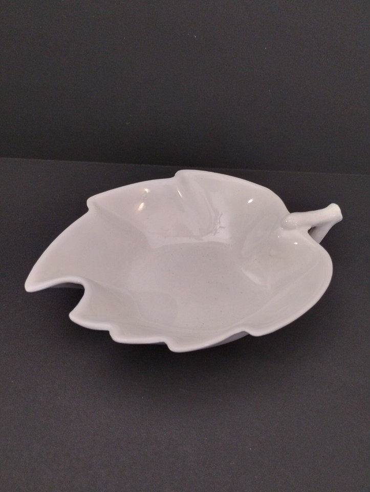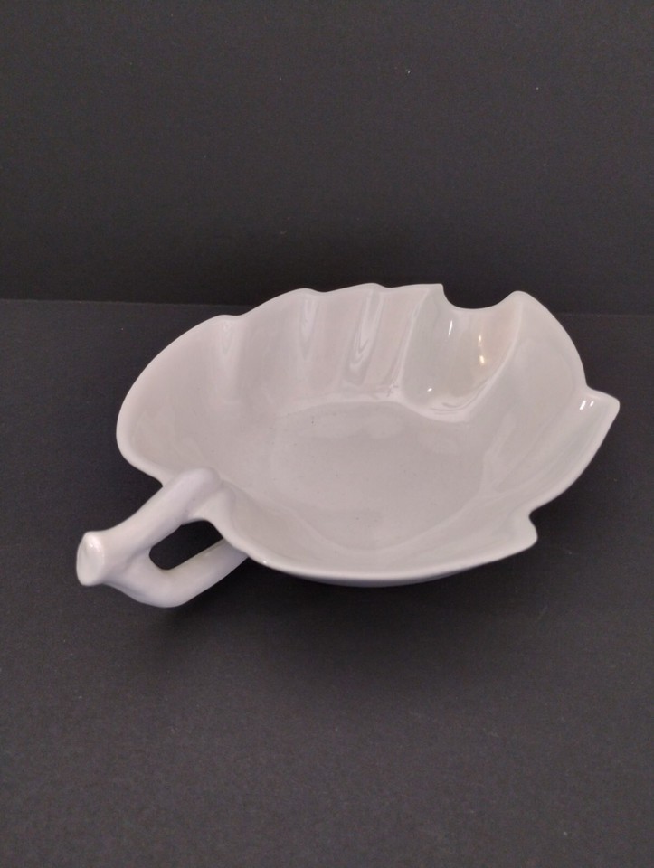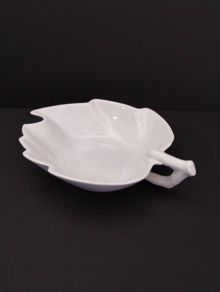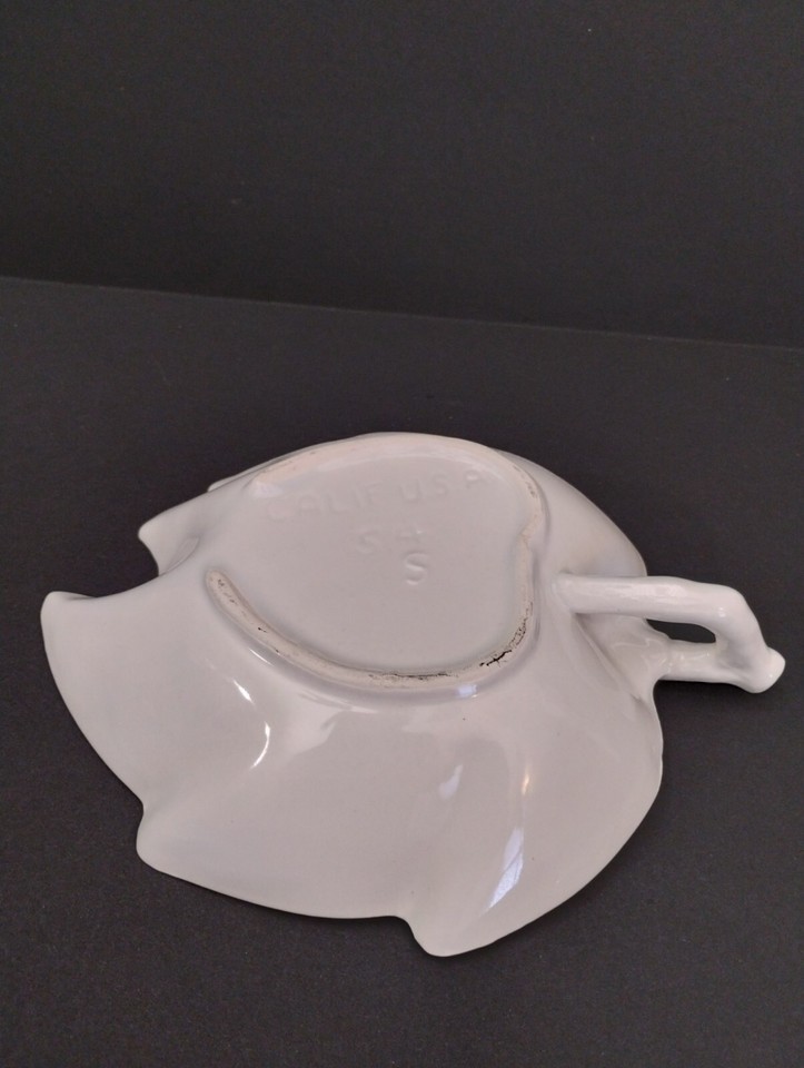 Vintage Valley Vista California Pottery Handled White Leaf Trinket Nut Bowl #54