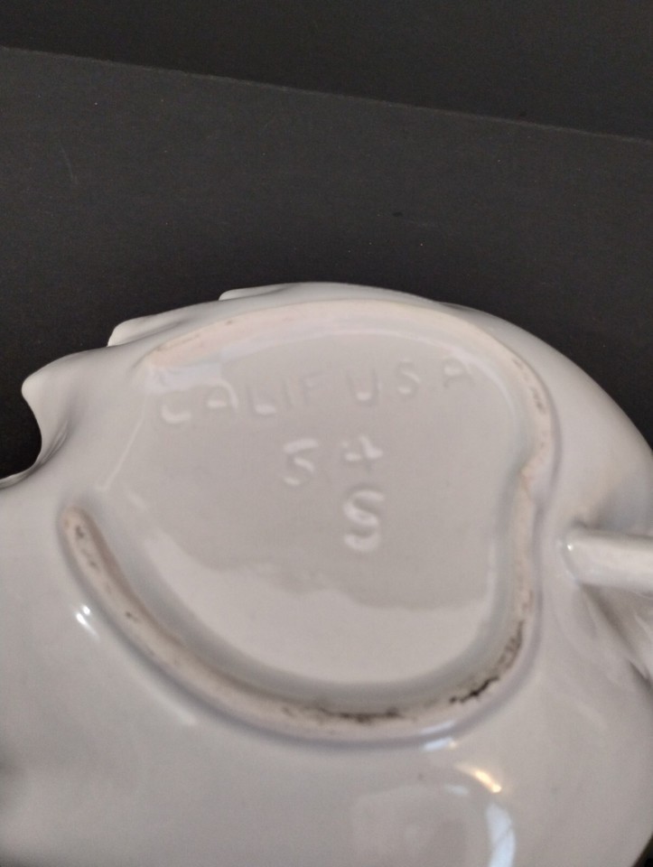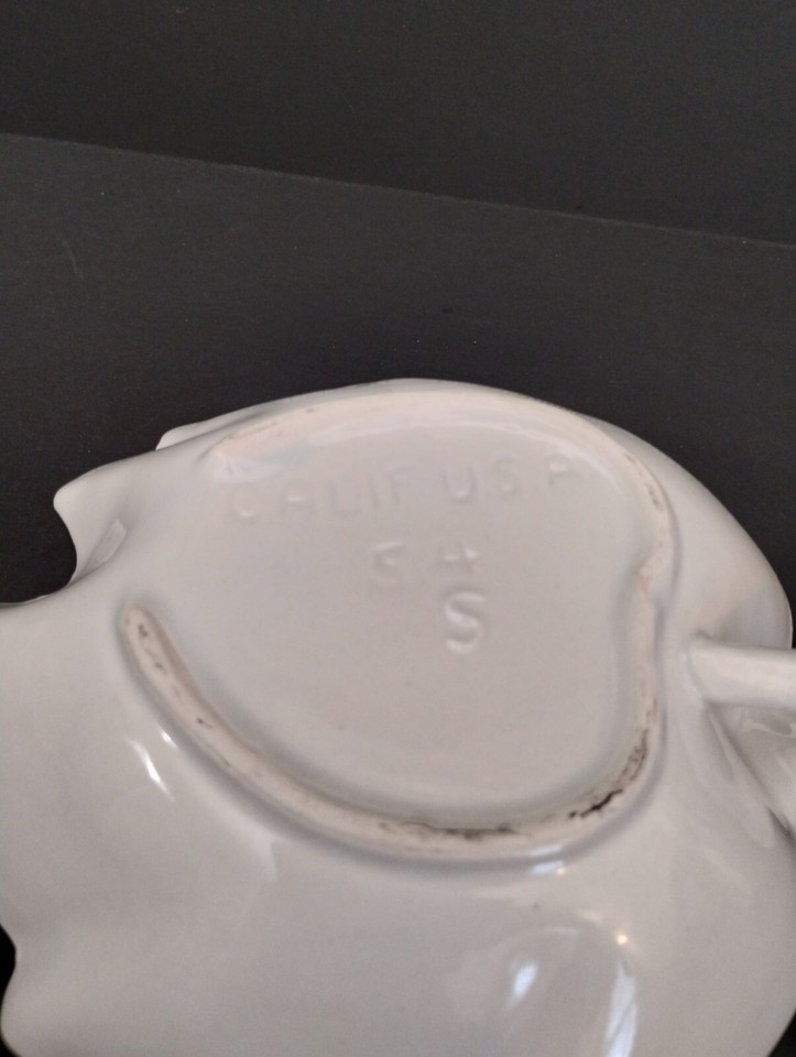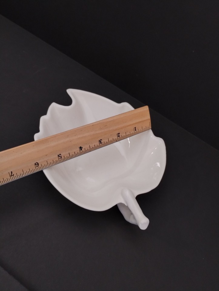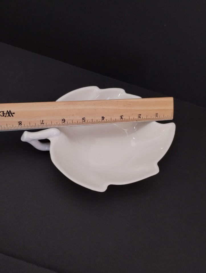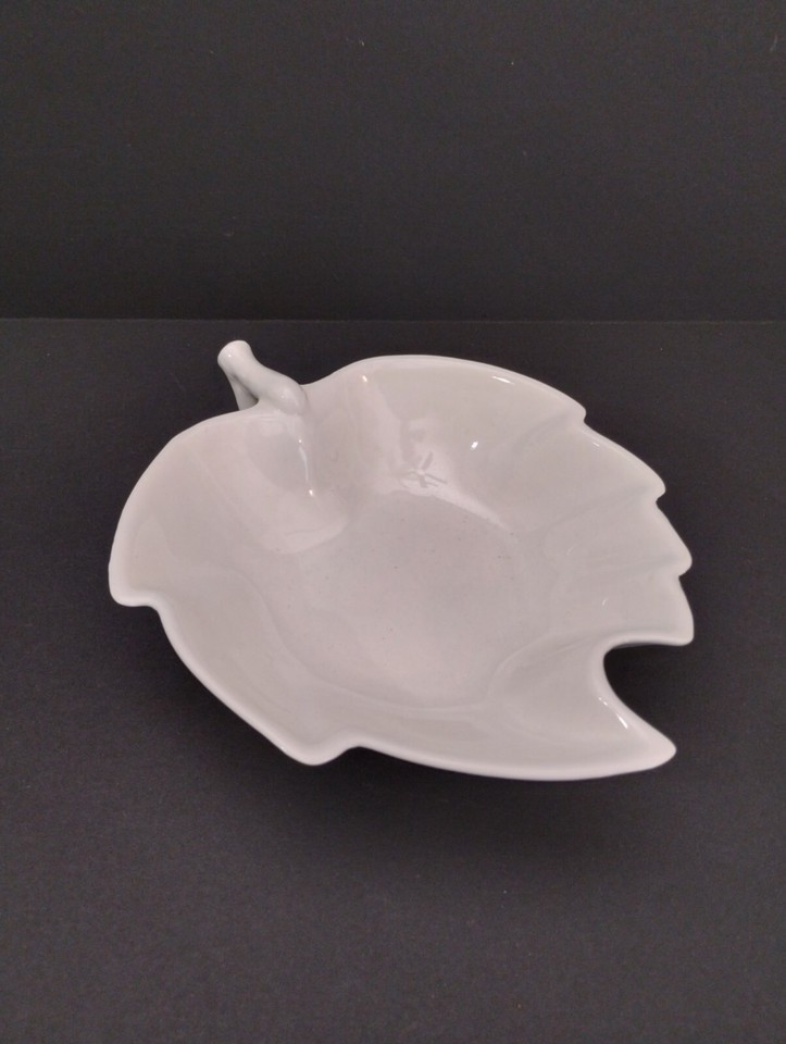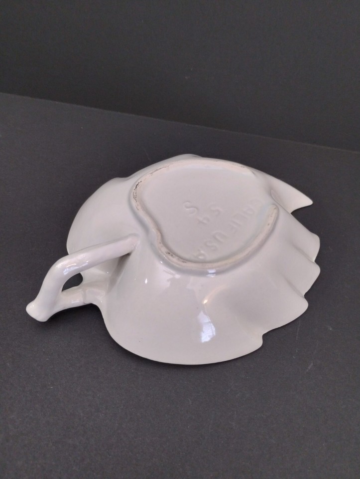 Vintage Valley Vista California Pottery Handled White Leaf Trinket Nut Bowl #54