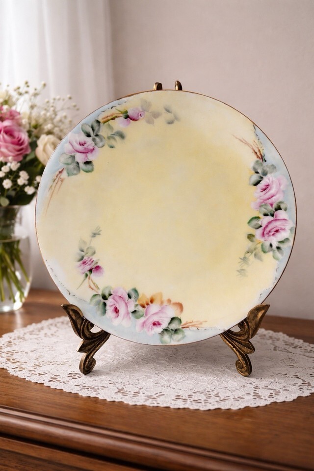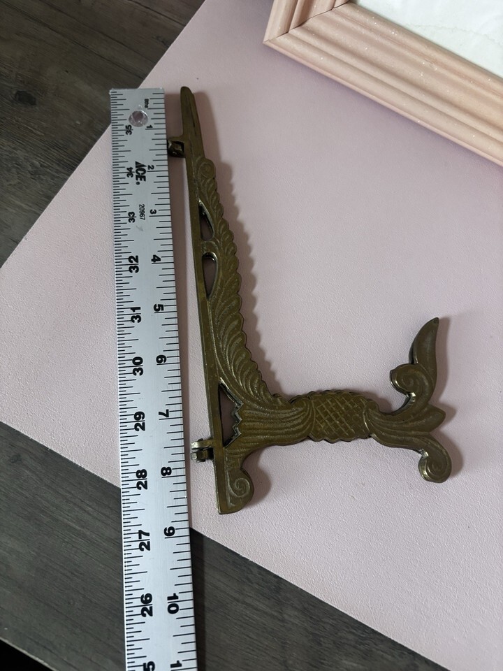 Vintage Brass Easel Stand Ornate Display Plate Frame Holder Decor 9" Cottagecore
