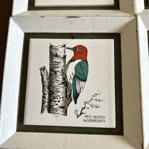 VTG Norleans Japan Bird Tile Set Of 4 Framed Decor Woodpecker Oriole A3