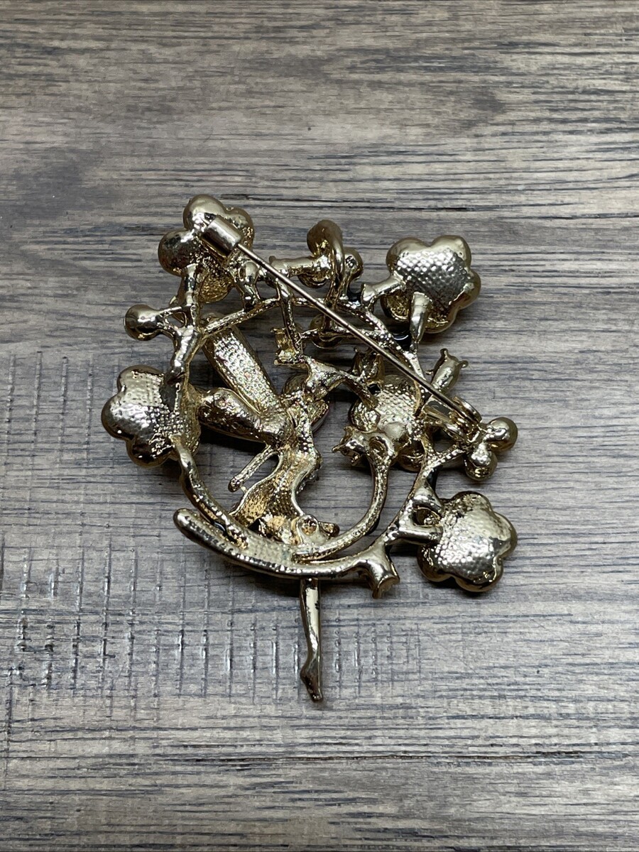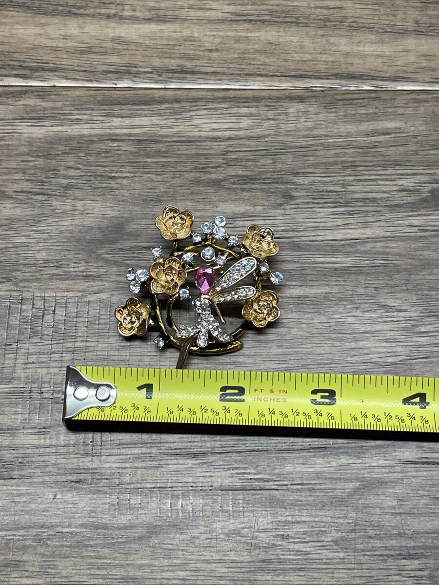 Gold Tone Rhinestone Fairy Floral Flower Brooch Pendant Estate Jewelry KG JD