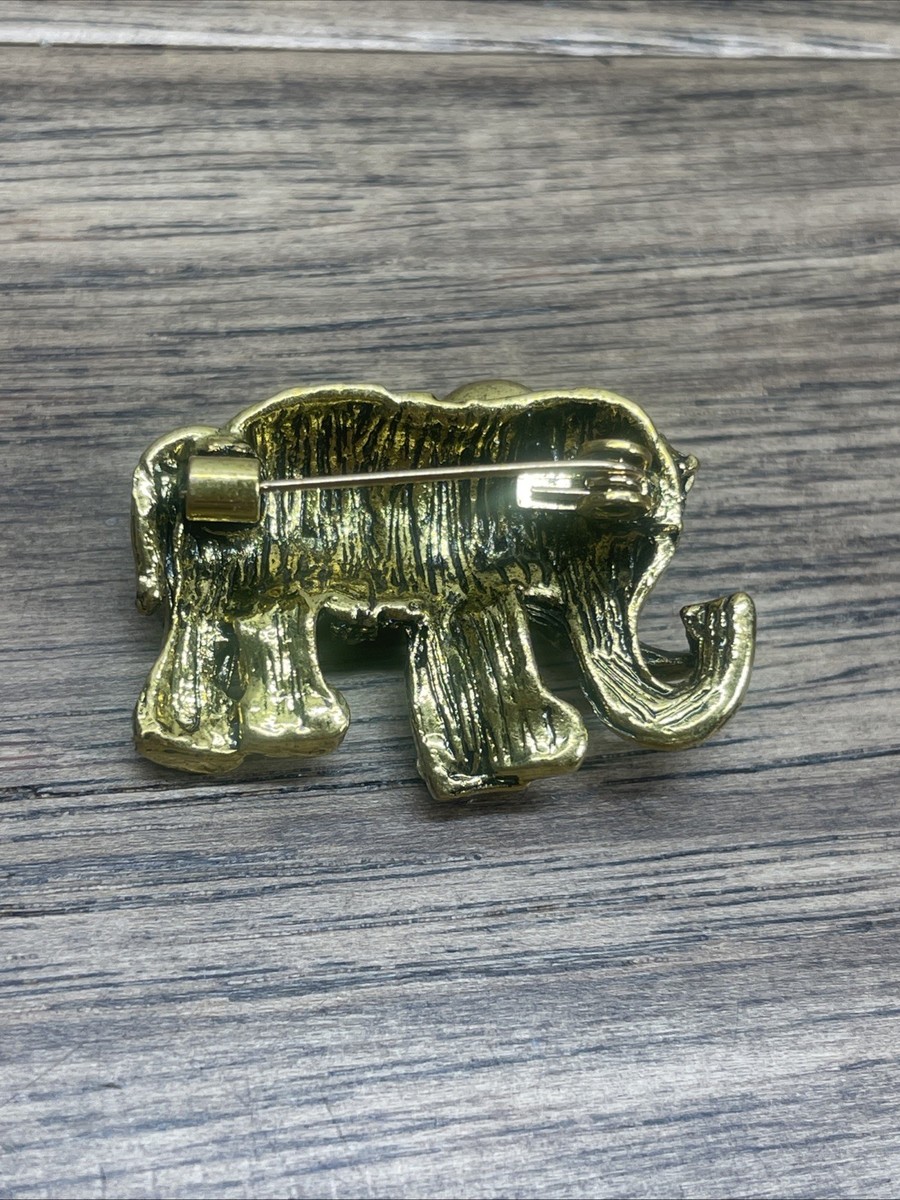 Gold Tone Rhinestone Elephant Brooch Pin and similar items