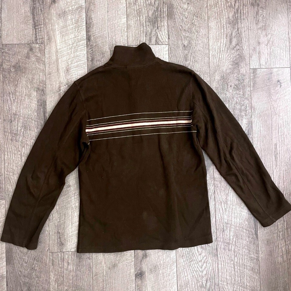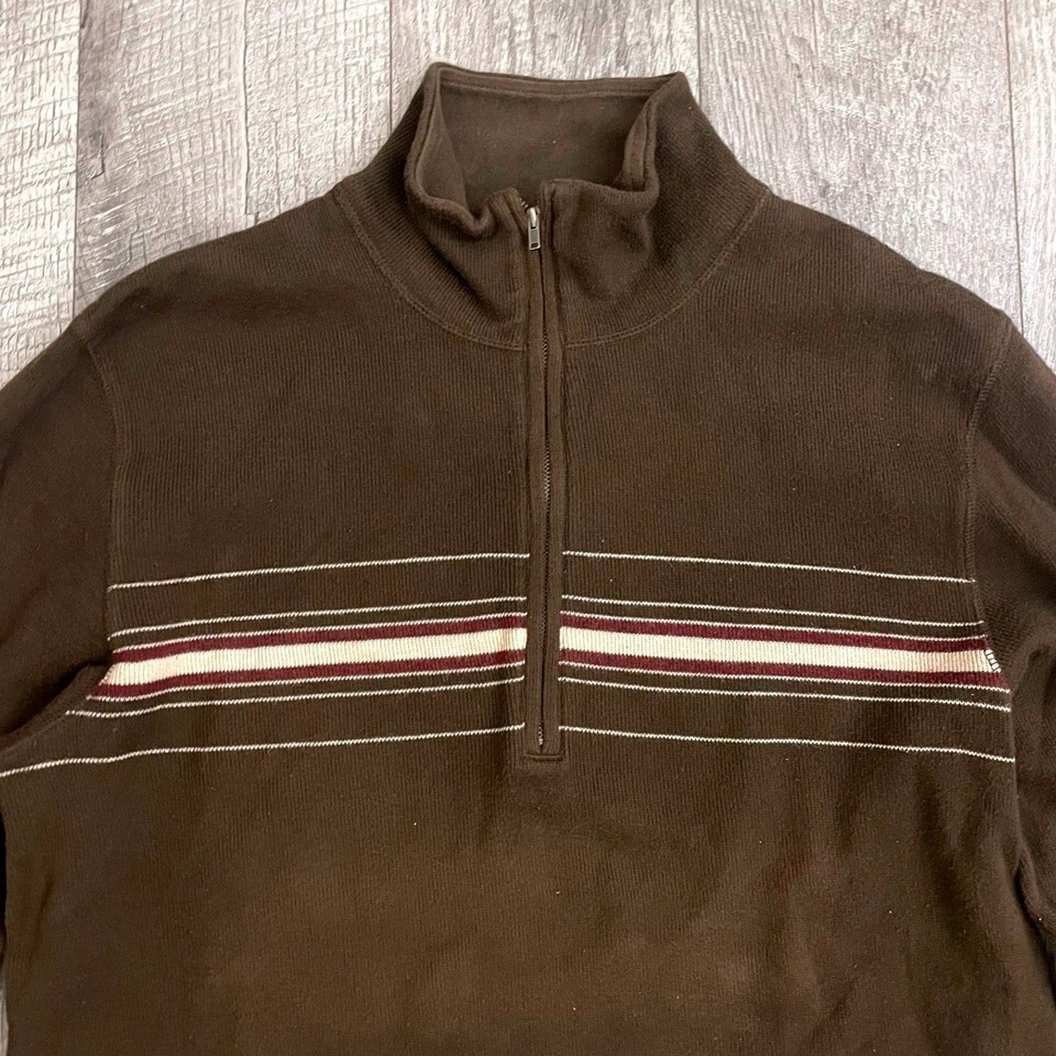 Banana Republic Mens Brown Striped Quarter Zip Cotton Pullover Sweater Size M
