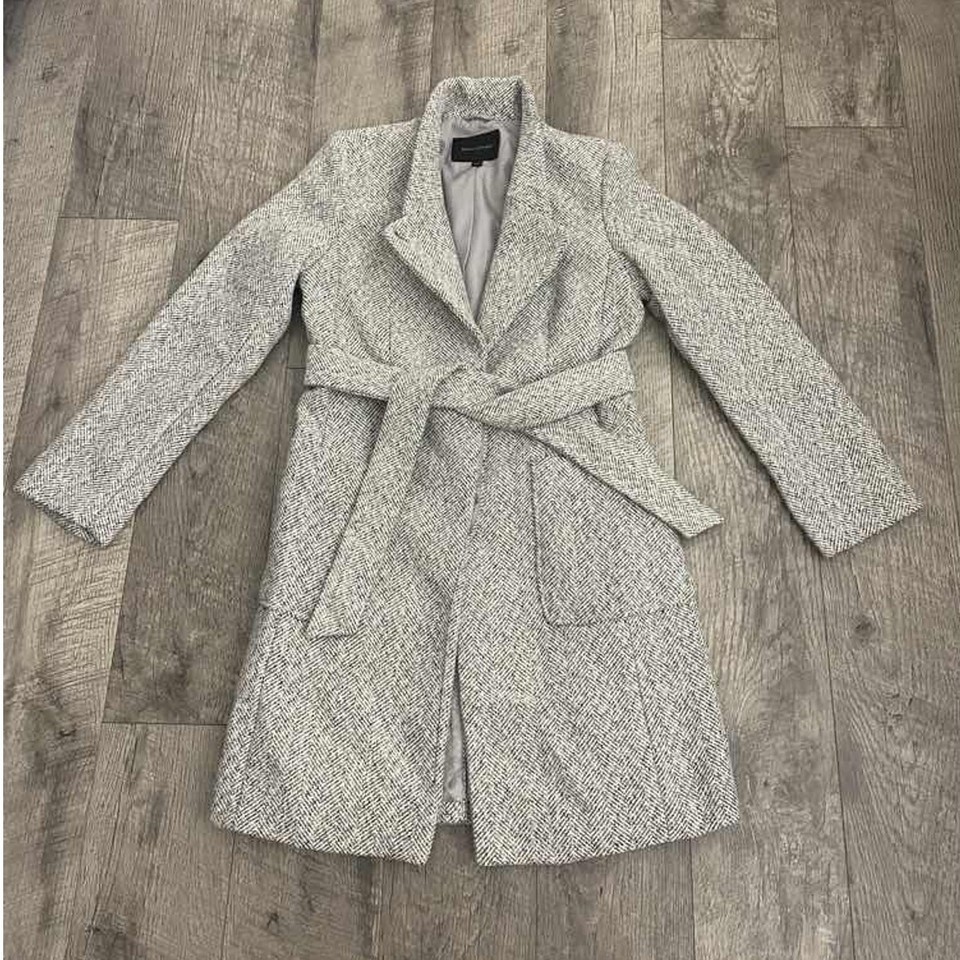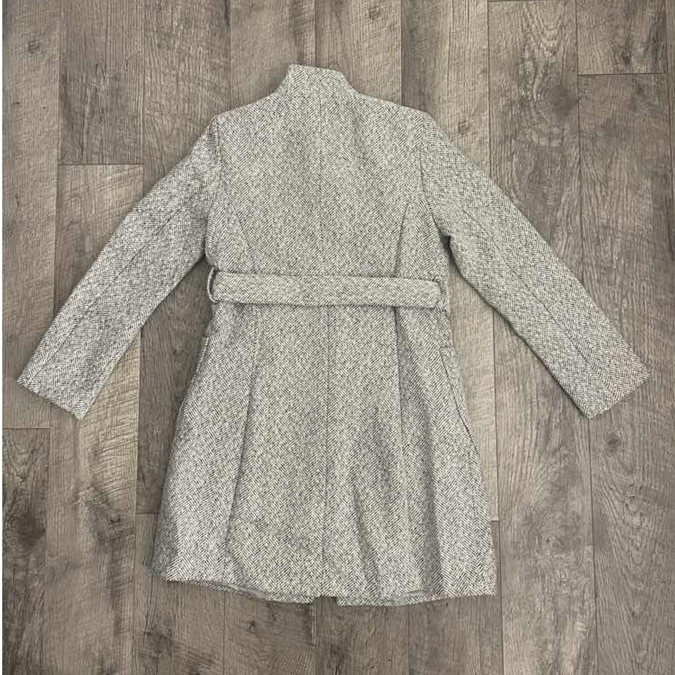 Banana Republic Women's Black White Tweed Herringbone Belted Wrap Coat