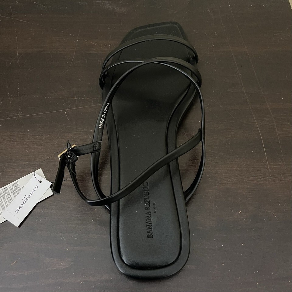 Banana Republic Women's Black Leather Strappy Flat Sandals