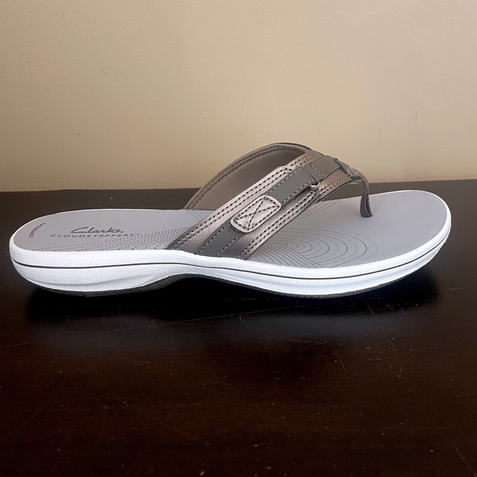 Clarks Cloudsteppers Breeze Sea Pewter Grey Thong Sandals Womens 10M 26125044