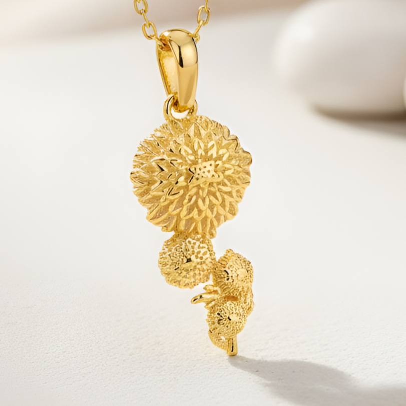 This chrysanthemum flower necklace celebrates symbolic jewelry, handcrafted silver art, botanical motifs, and meaningful gifts through its delicate 14K gold-plated structure. Inspired by the timeless elegance of the chrysanthemum, the pendant carries a message of resilience, joy, and spiritual clarity. Across many cultures, this flower represents optimism and purity, making it a cherished symbol of new beginnings and heartfelt emotions. Each petal is shaped with careful artisan precision, reflecting the harmony found in nature’s geometry. Designed to feel both poetic and refined, this piece is ideal for those who value jewelry with emotional depth. The soft lines and balanced proportions create a graceful silhouette that rests beautifully on the neckline. Its gentle bloom captures the essence of quiet strength, making this necklace a thoughtful keepsake for birthdays, special milestones, or personal transformation. Every detail embodies elegance, warmth, and the artistry of handmade craftsmanship, offering a piece that feels personal and timeless.