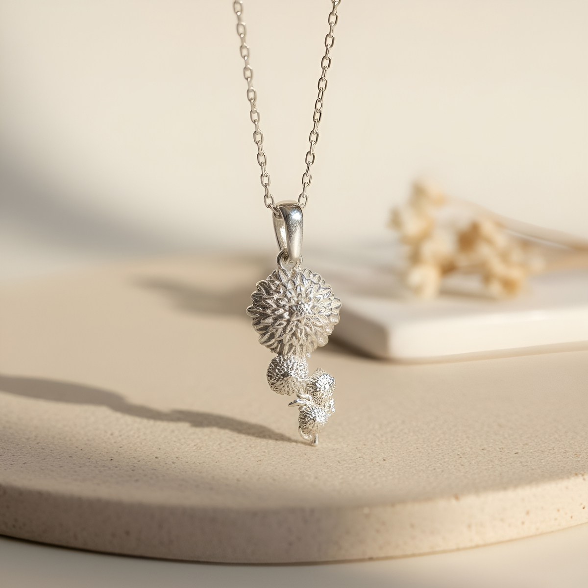 Chrysanthemum Flower Necklace | 925 Sterling Silver for Women | Botanical Bloom