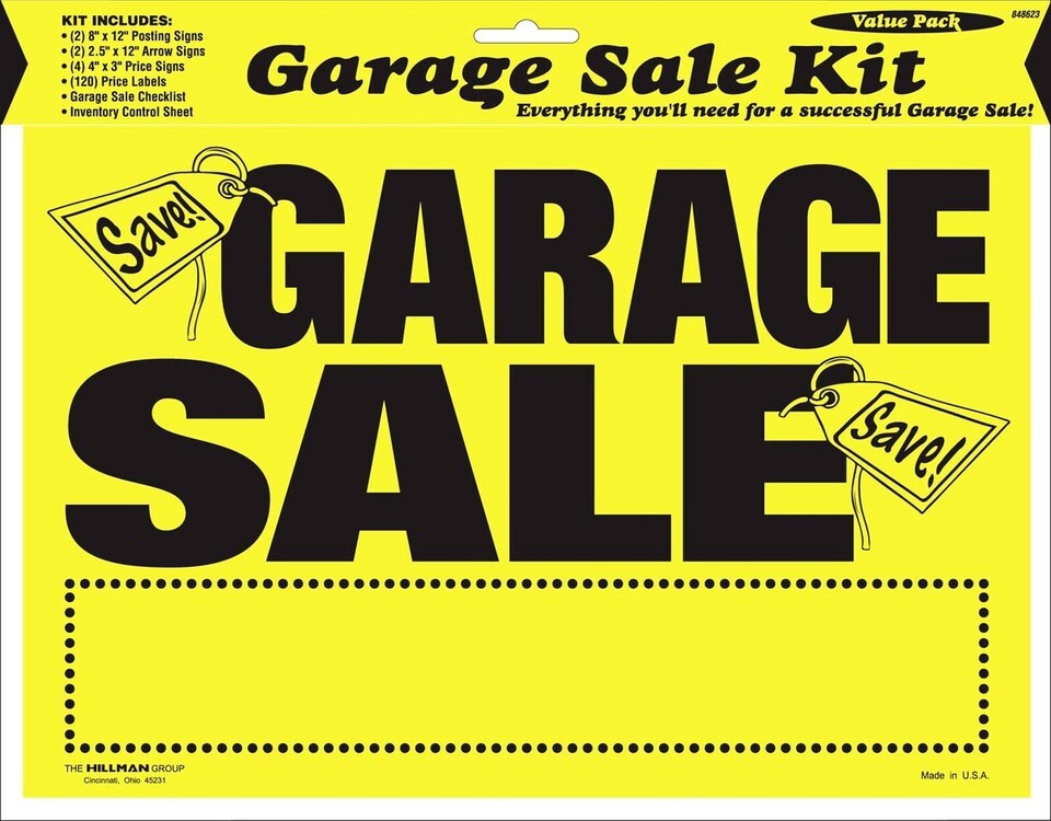 Garage Yard Sale SIGN KIT 8"x12 SignS arrows Price Label Stickers HILLMAN 848623