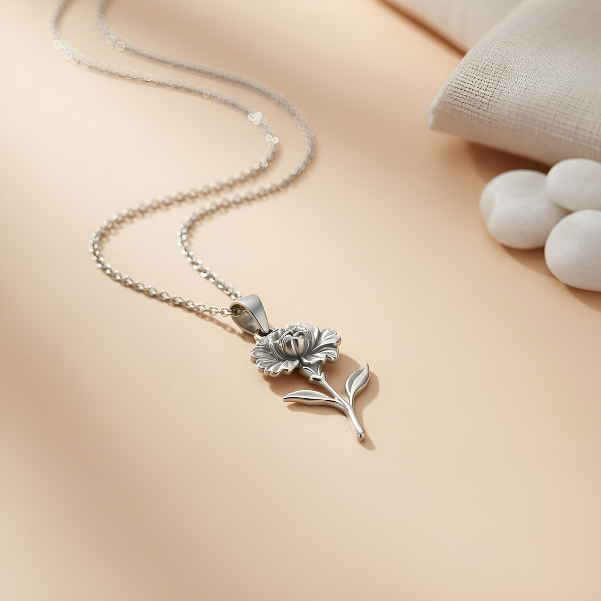 This handmade carnation flower pendant blends floral jewelry, botanical art, silver craftsmanship, and delicate bloom details to express the symbolic power of the carnation. Known for representing admiration, devotion, and heartfelt affection, the carnation has long been a flower of deep emotional meaning. Its layered petals and textured silhouette create a sense of elegance and gentle movement, echoing the softness of nature’s most expressive blossoms. Each curve and contour reflects thoughtful artistry, bringing out the character of the flower as a reminder of gratitude and emotional connection. Crafted entirely in solid 925 sterling silver, the design transforms a classic botanical motif into a meaningful keepsake. Its quiet beauty offers the wearer a sense of comfort, appreciation, and sincerity, turning the carnation’s symbolism into a timeless piece of jewelry.