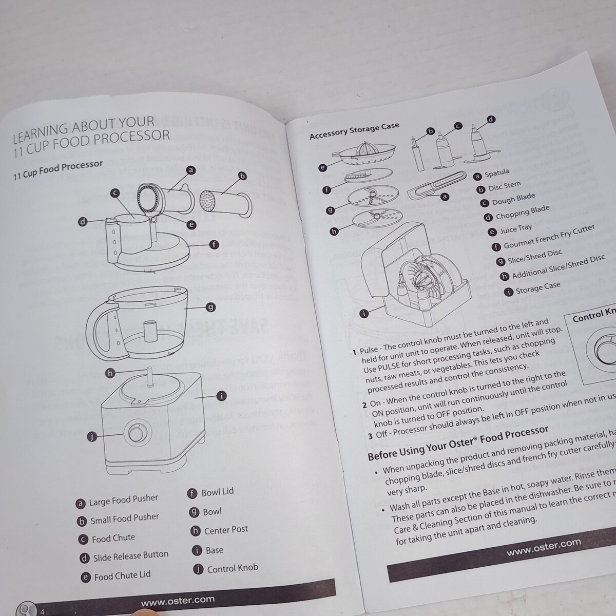 Oster 11-Cup Food Processor FPSTFP4255 Owner's Manual User Guide instructions