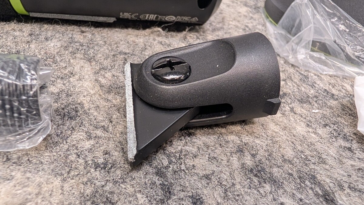 Brand new and unused. The box was damaged and thrown out. The mount is broken and would need to be glued back. As shown in the pictures. No damage to the microphone.