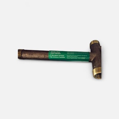 The water source Tank Tee Brass Well is a four-piece set suitable for a well pressure tank. Made of brass with a tee shape, this fitting includes a pressure relief valve, pressure gauge, and drain valve. It has an interior diameter of 1 inch, measures 11 inches in length, 5.5 inches in width, and 1.5 inches in height. The set from the brand water source is designed for plumbing and fixtures, providing a convenient solution for maintaining water pressure in a well system. dual threaded 1 inch MPT or 3/4 inch FPT 10" Length 25.4mm o 19.1mm-254mm