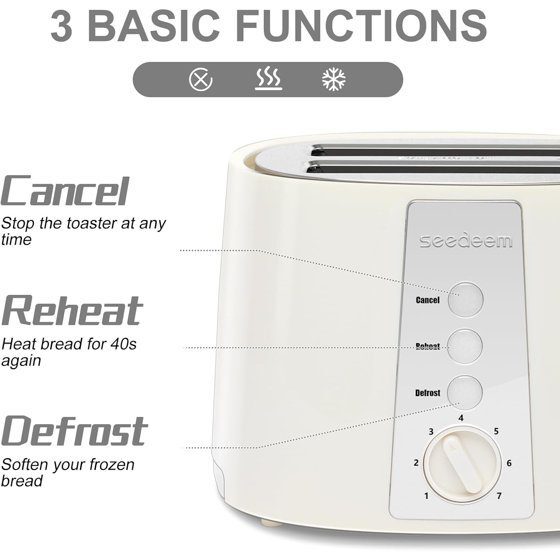 SEEDEEM 750W 2 Slice Bread Toaster Machine with Extra Wide Slot