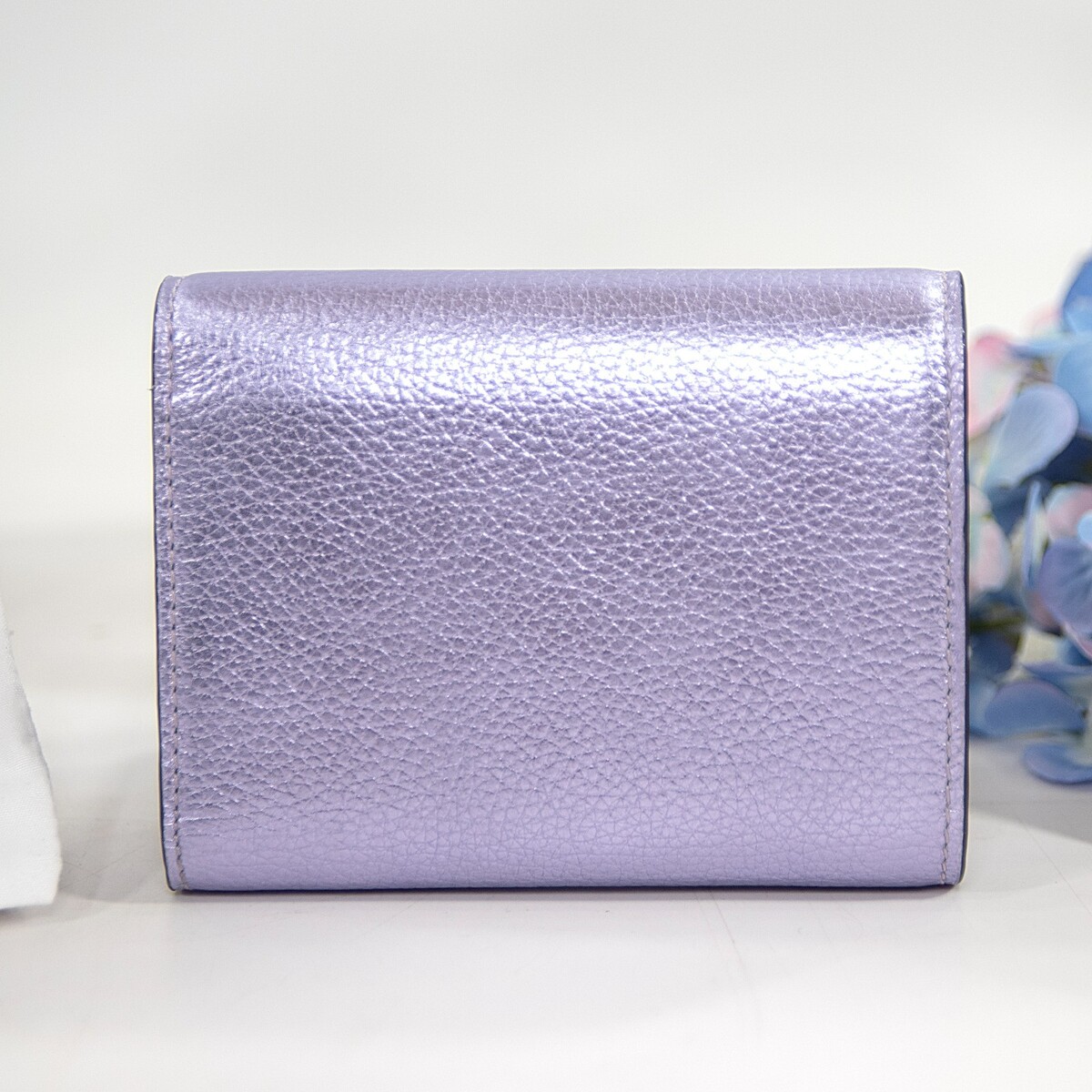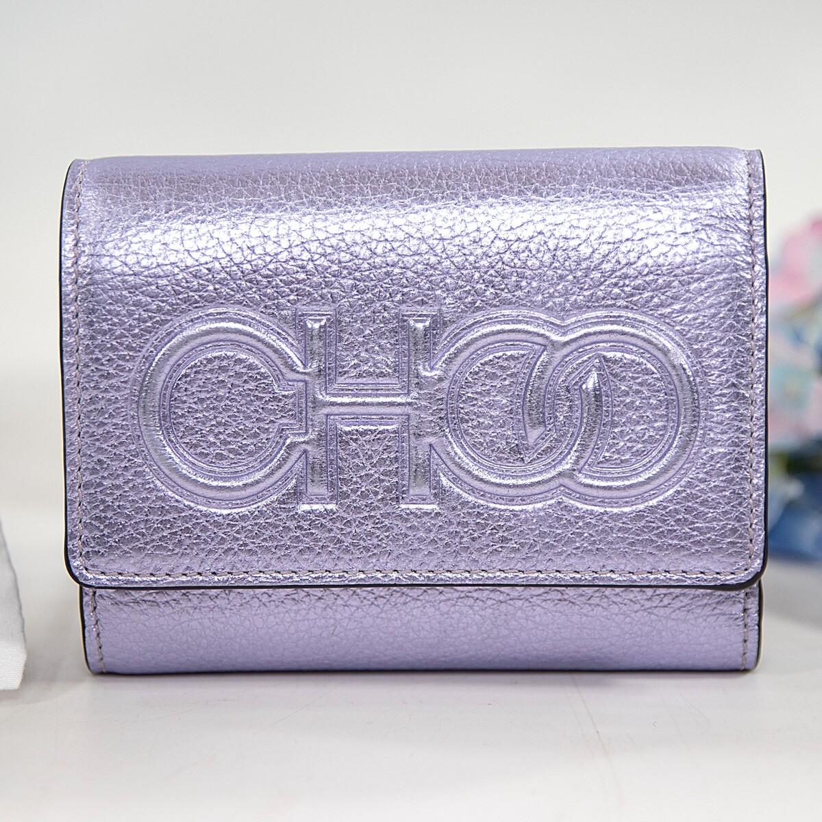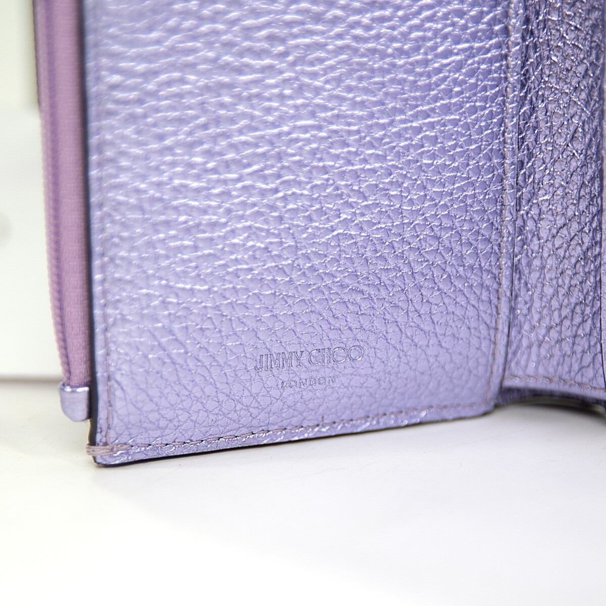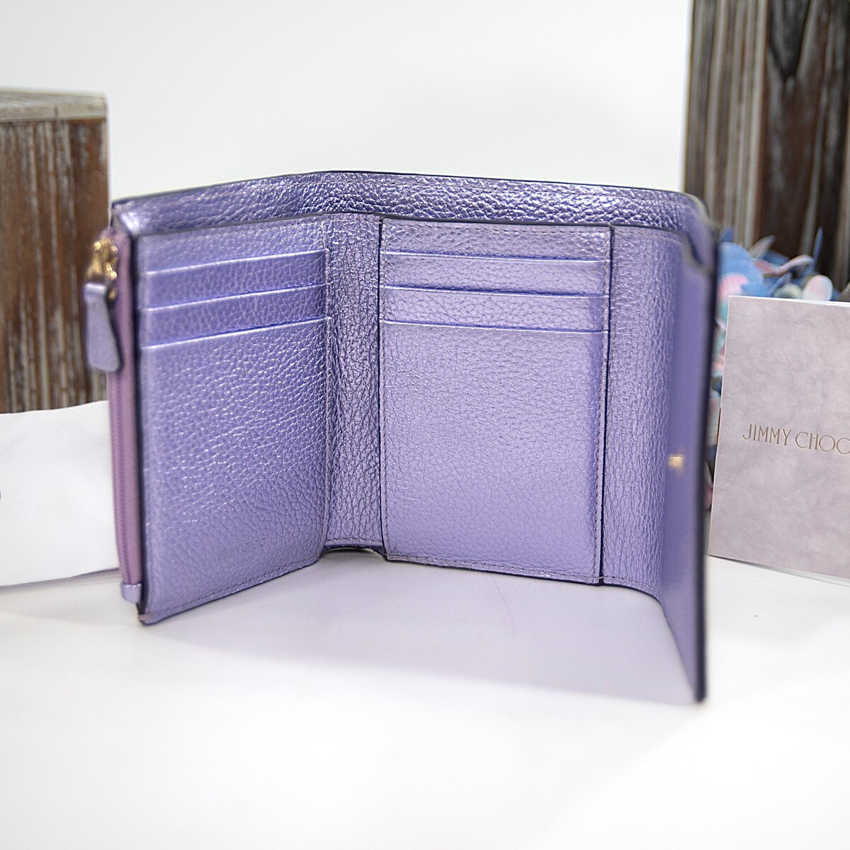 Jimmy Choo Lavender Purple Metallic Leather Trifold Compact Wallet NWT