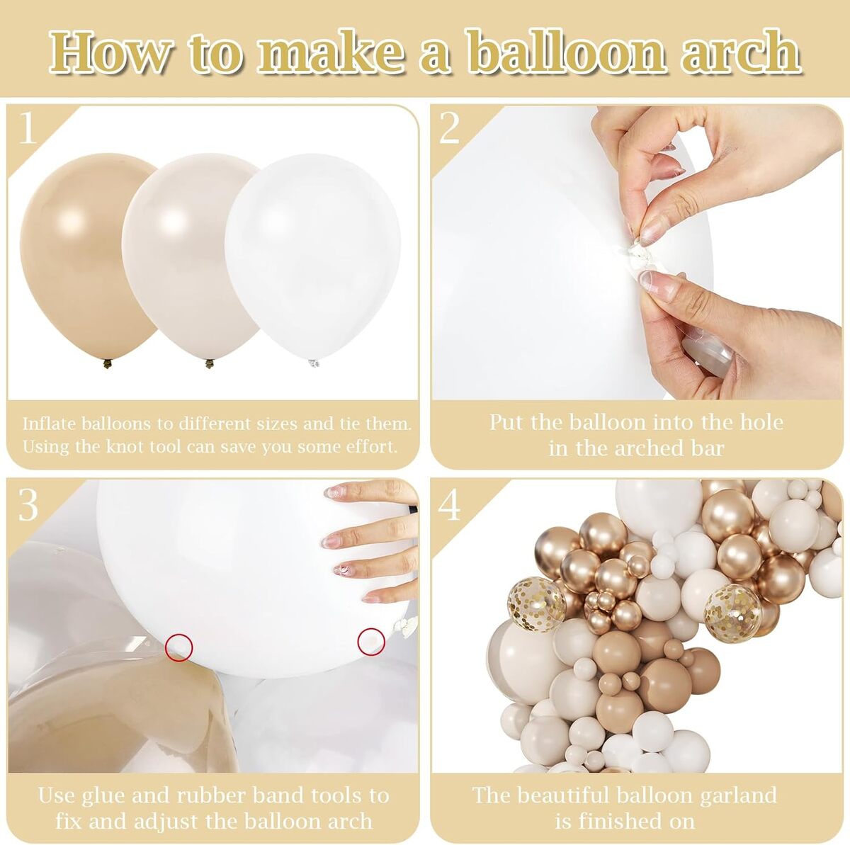 Create elegant and versatile party decorations with this complete neutral balloon arch kit: