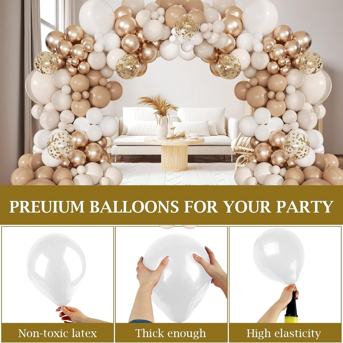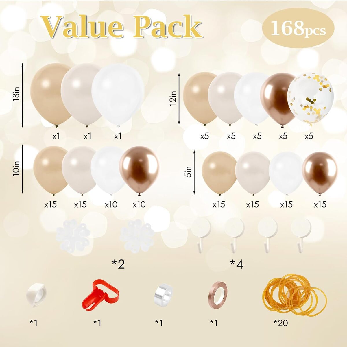 Neutral Balloon Arch Kit – 168pcs White, Beige & Gold Garland for Party Decor