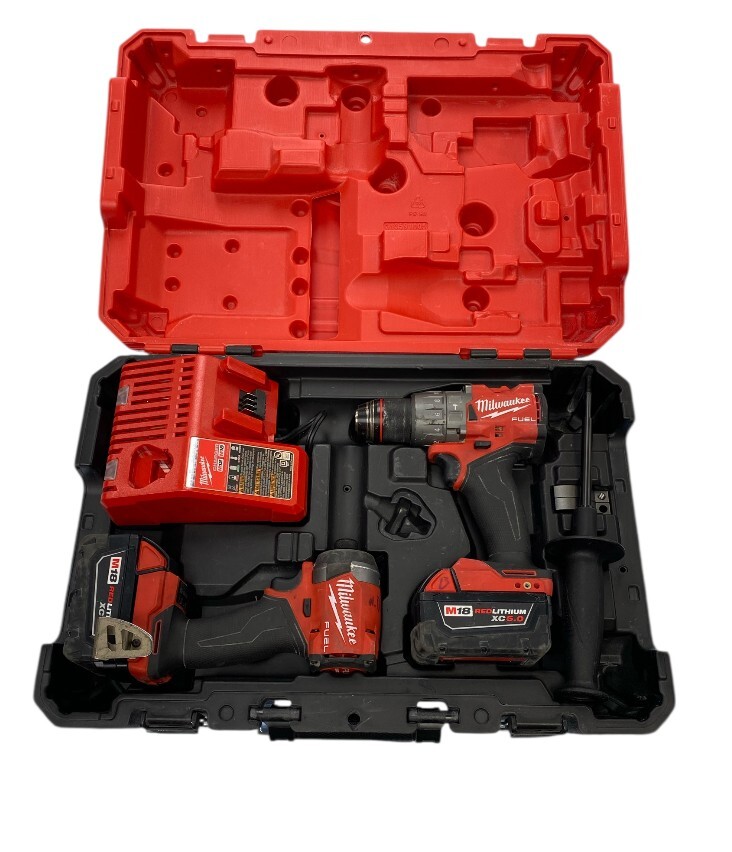 Category: Cordless hand toolsType: Hammer drillBrand: MilwaukeeModel number: 3697-22Model name: M18 FUEL 2-TOOL COMBO KITSize: 1/2Color: Red Black GrayPower source: BatteryBattery Included: yesCase included: yesCharger Included: yesVoltage: 18Number of pieces: 3Drive Size: 1/4-1/2Condition:Used