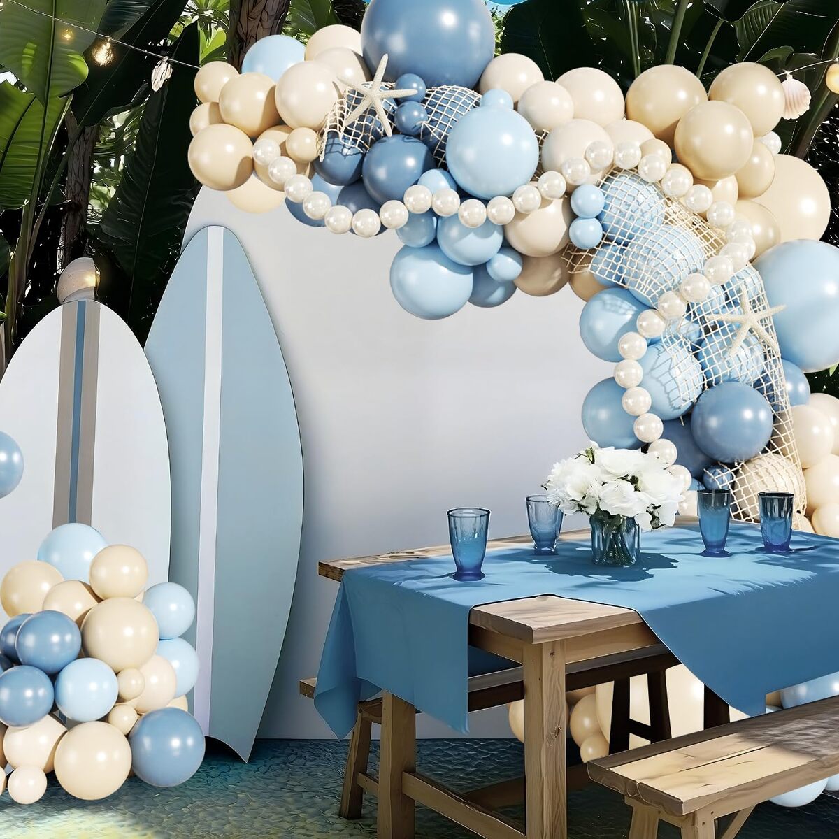140pcs Blue Beach Balloon Arch Kit Ocean Pool Party Baby Shower Decor