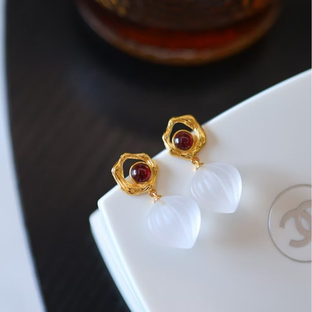 Natural White Quartz Garnet Drop Earrings, and similar items
