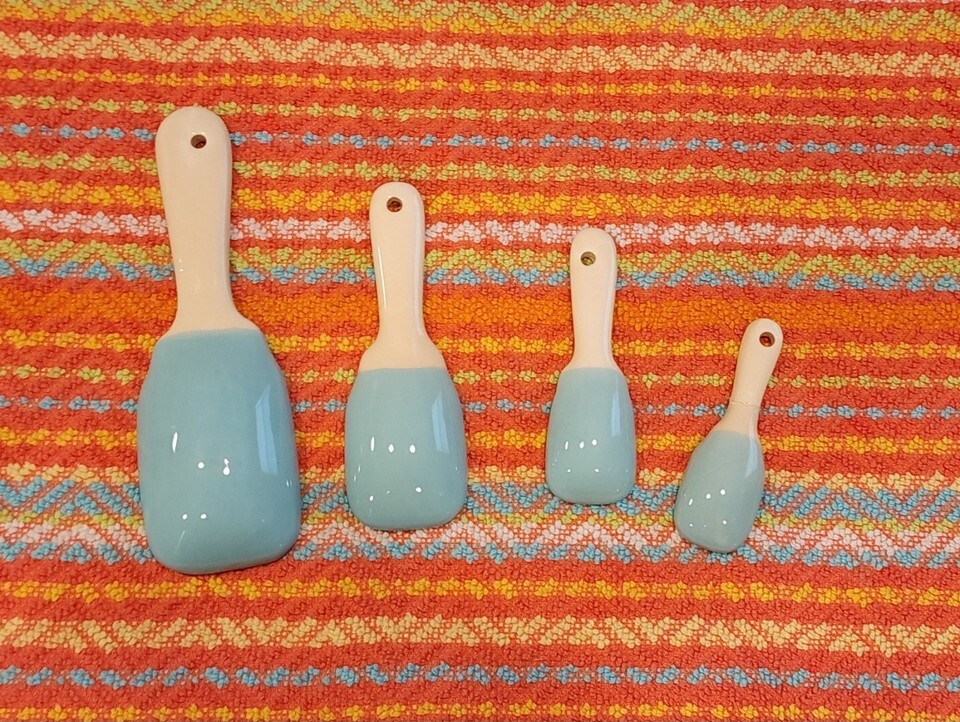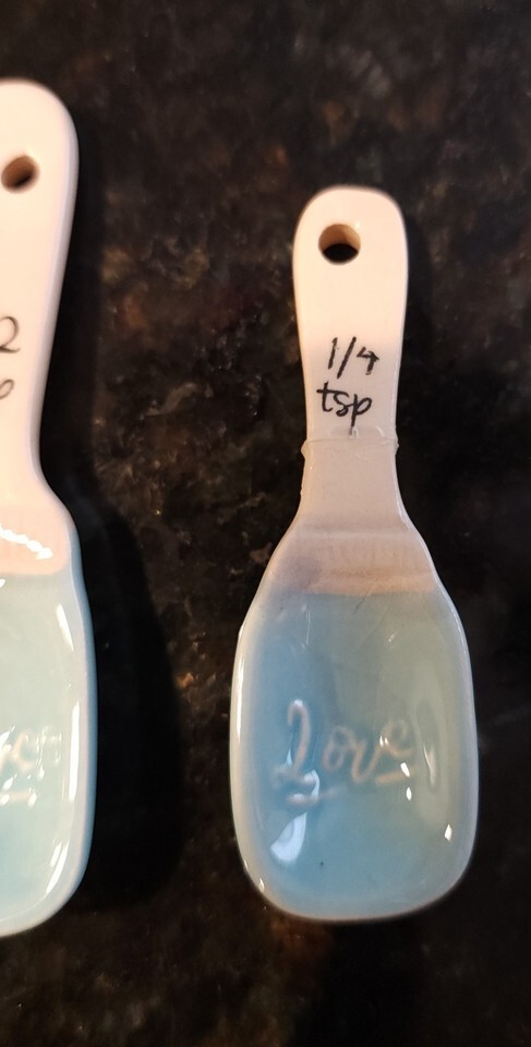 Light Blue Mason Jar Shaped "Love" Ceramic Measuring Spoons Set of 4 - READ