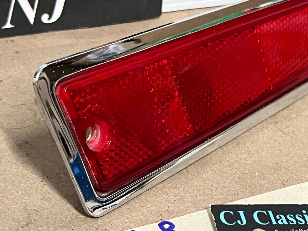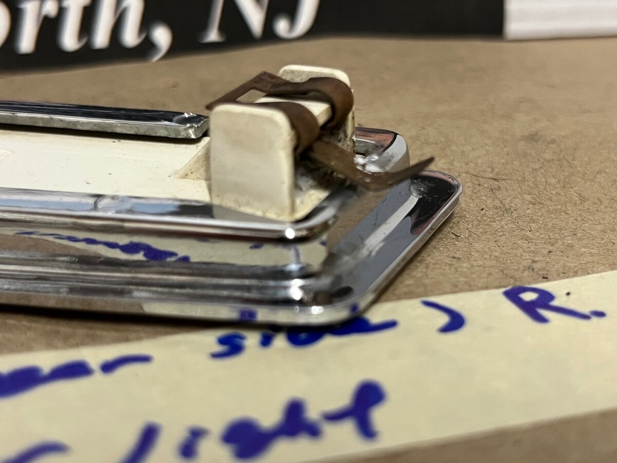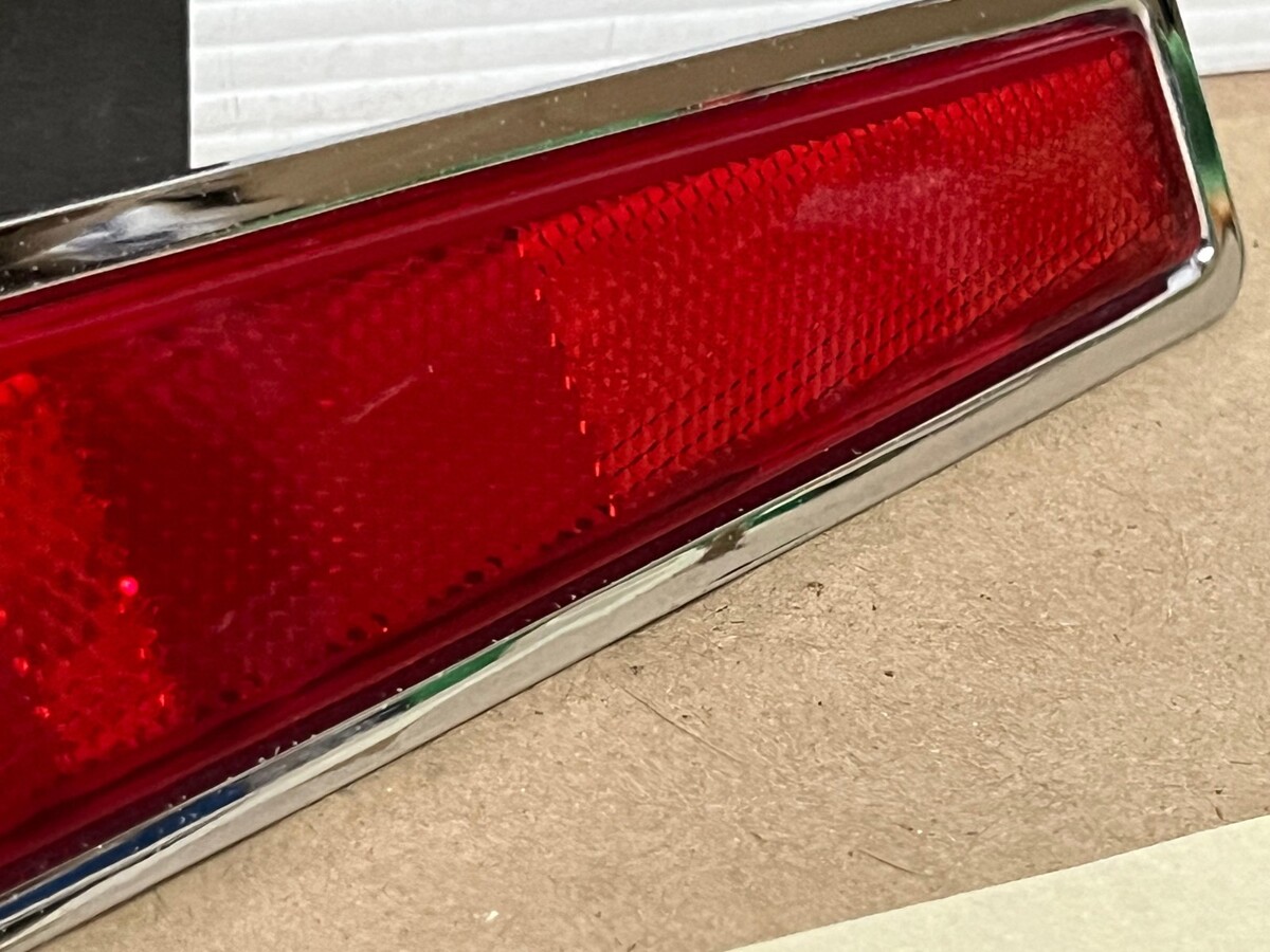 OEM passenger side bumper end marker light is in excellent condition. Has few minor signs of wear for being over 50 years old. Chrome has a nice reflective shine. Red lens is clean, no cracks. All