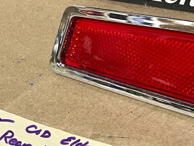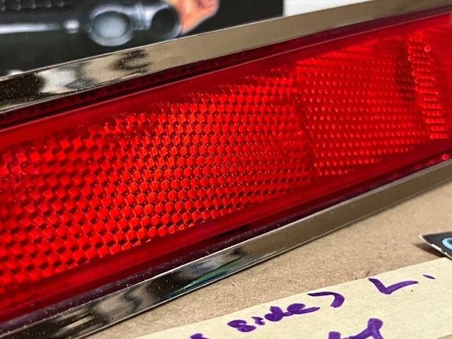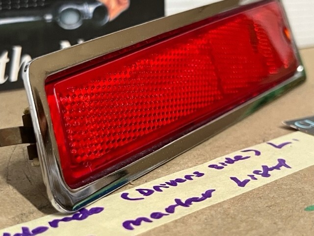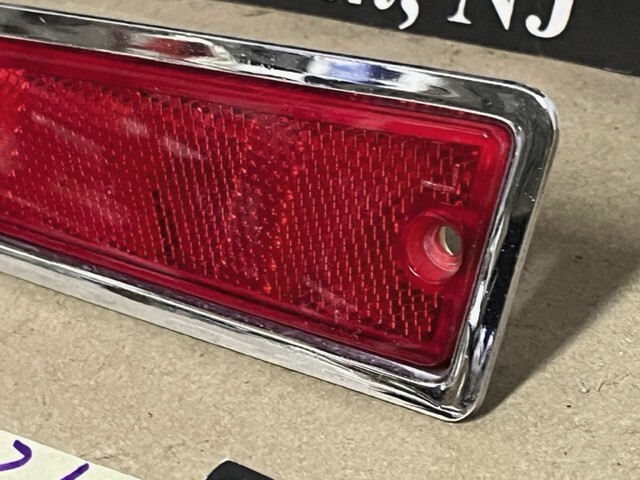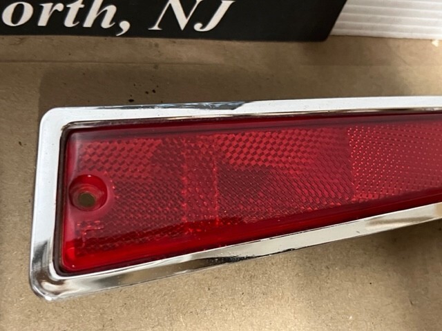 OEM driver side bumper end marker light is in excellent condition. Has few minor signs of wear for being over 50 years old. Chrome has a nice reflective shine. Red lens is clean, no cracks. All