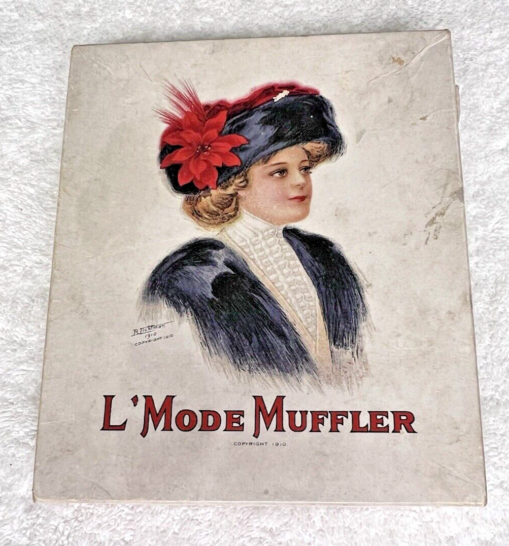 1910 L'Mode Muffler Box Only w Lovely Woman in Hat w Red Flower B Lichtman