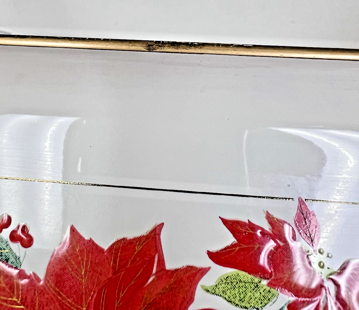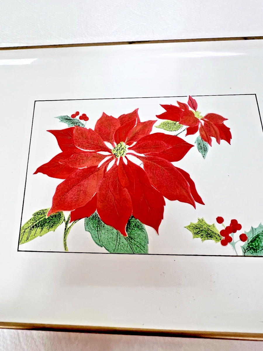 Vintage Otagiri Lacquerware Christmas Poinsettia Holly Tray 8 1/4 x 5 7/8 In Gibson Greetings Inc we have 4 price is for 1