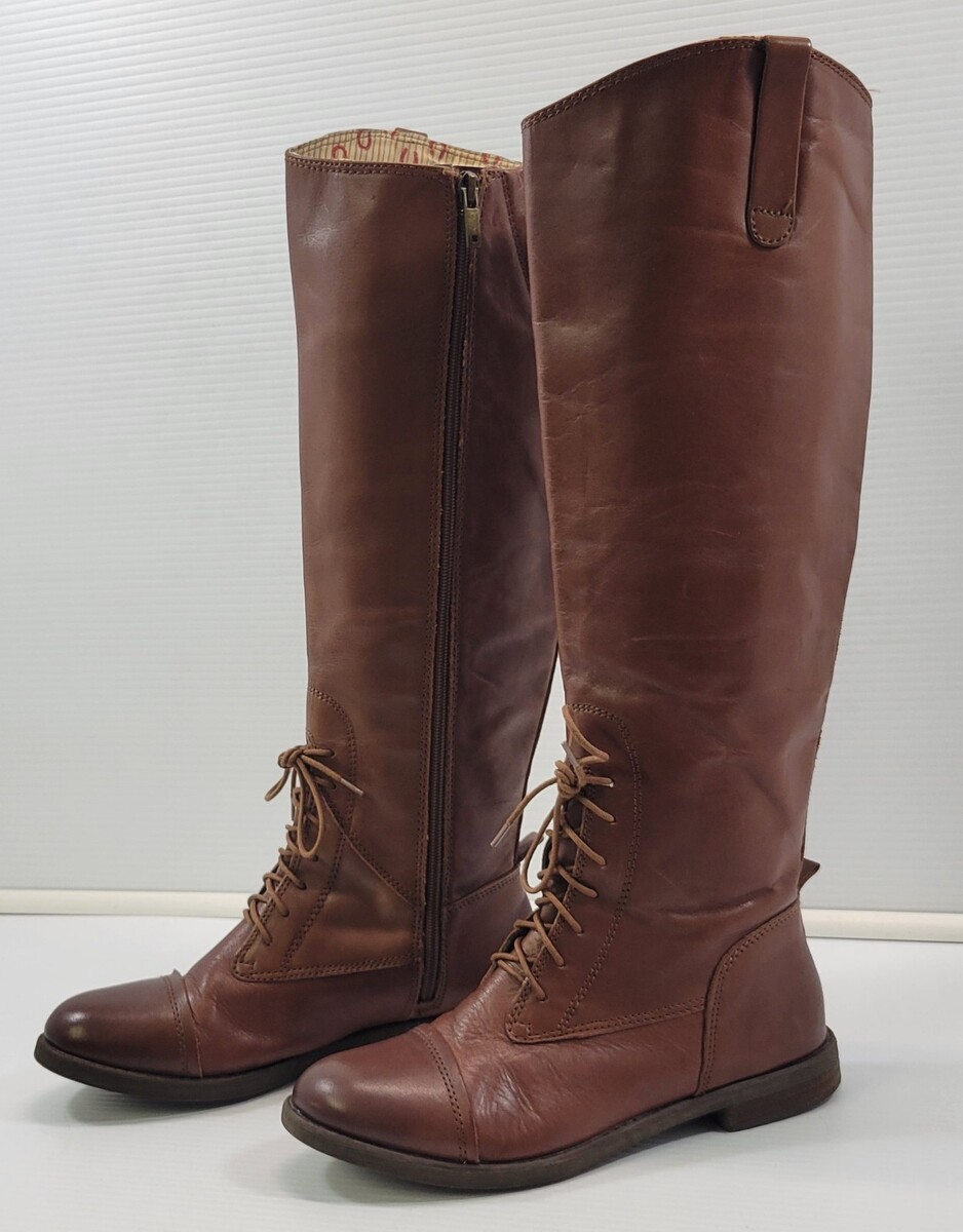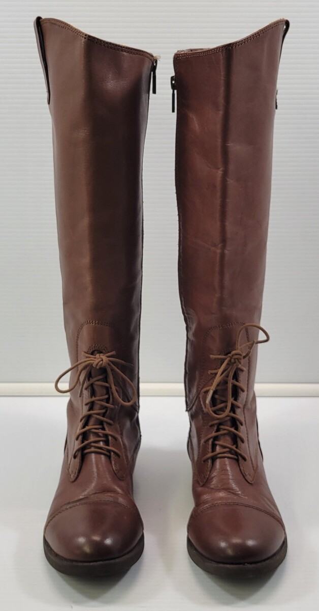 *E) Lucky Brand Woman Bourbon Vachetta Full Zip 18" Brown Boots LK-RIA 8M