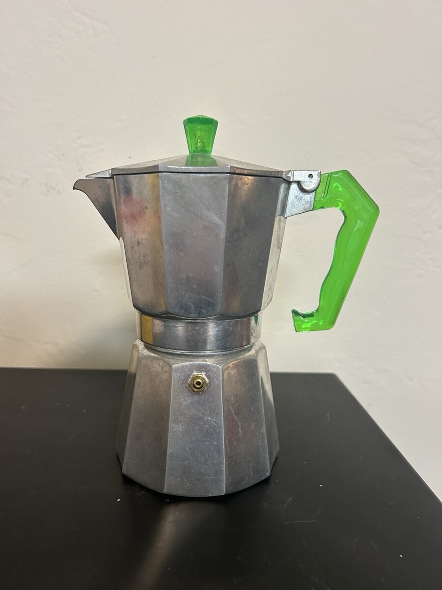 Vintage Pezzetti Moka Express Stovetop Espresso Maker Green Handle