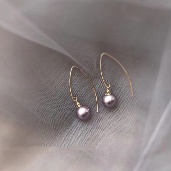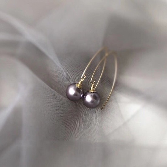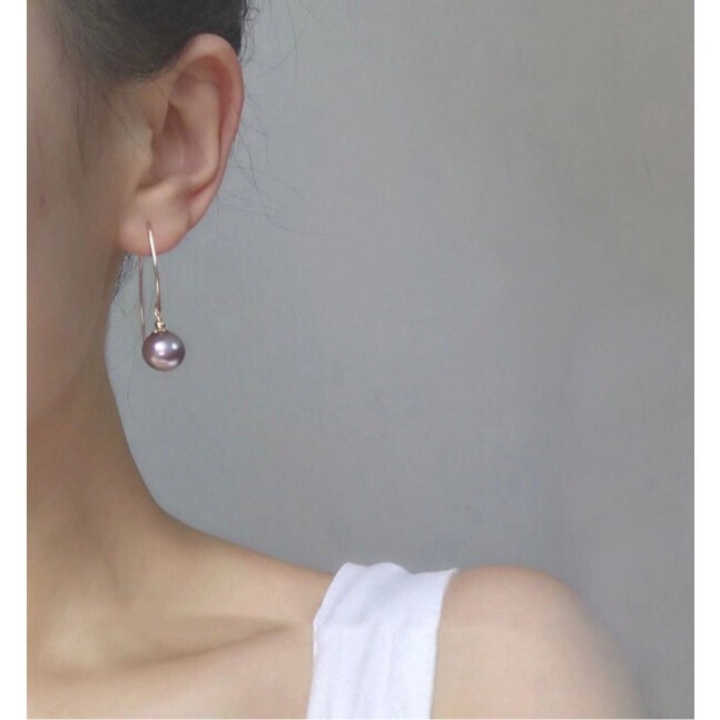 You will receive 1 pair of 14K gold filled Austrian purple pearl dangle earrings.