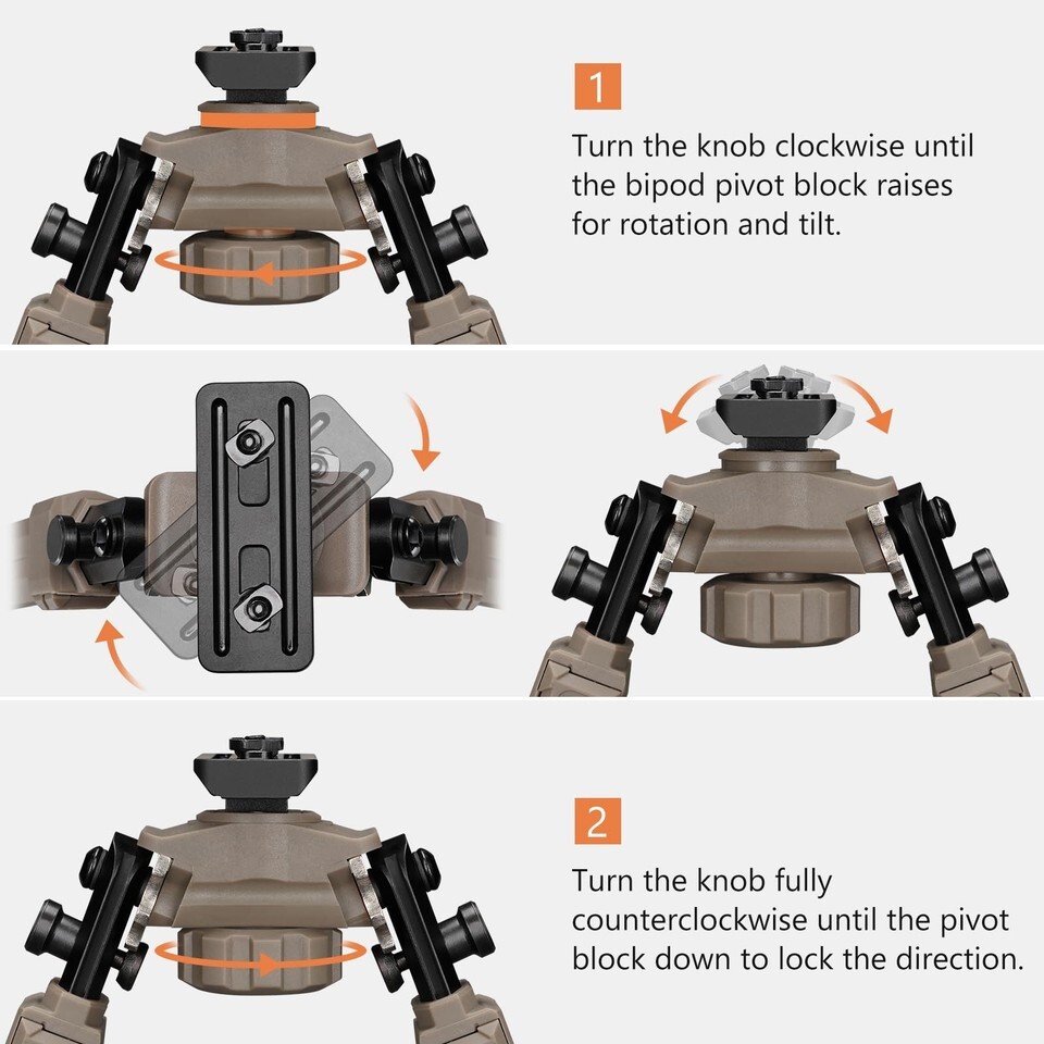 MidTen Bipod M-Rail Swivel Tilt Adjustable Height for Hunting Shooting