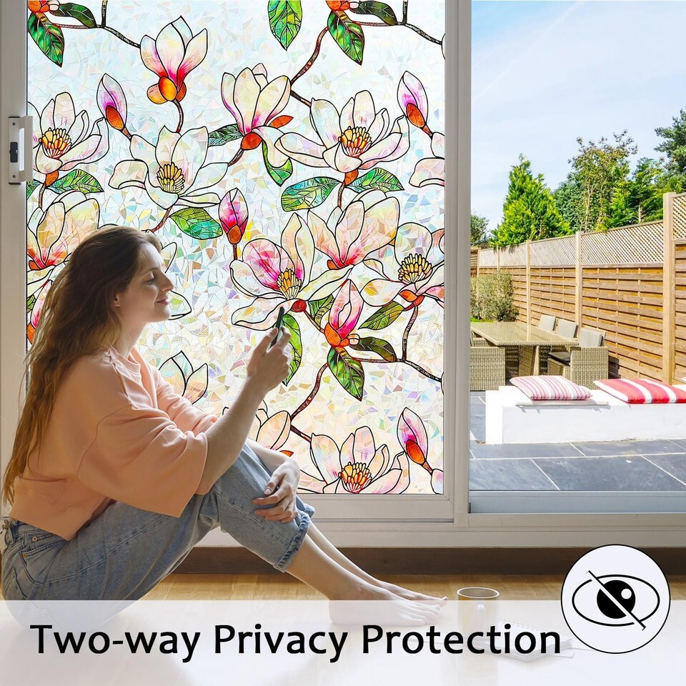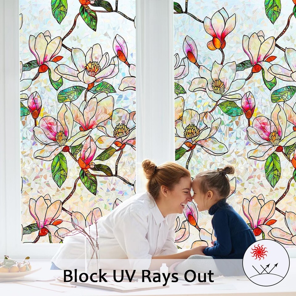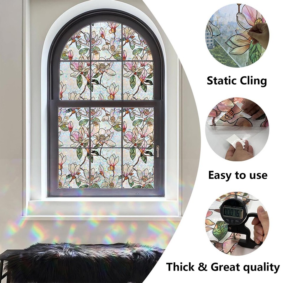 Bectosy Window Privacy Film Stained Glass Decorative Static Cling Rainbow Heat C