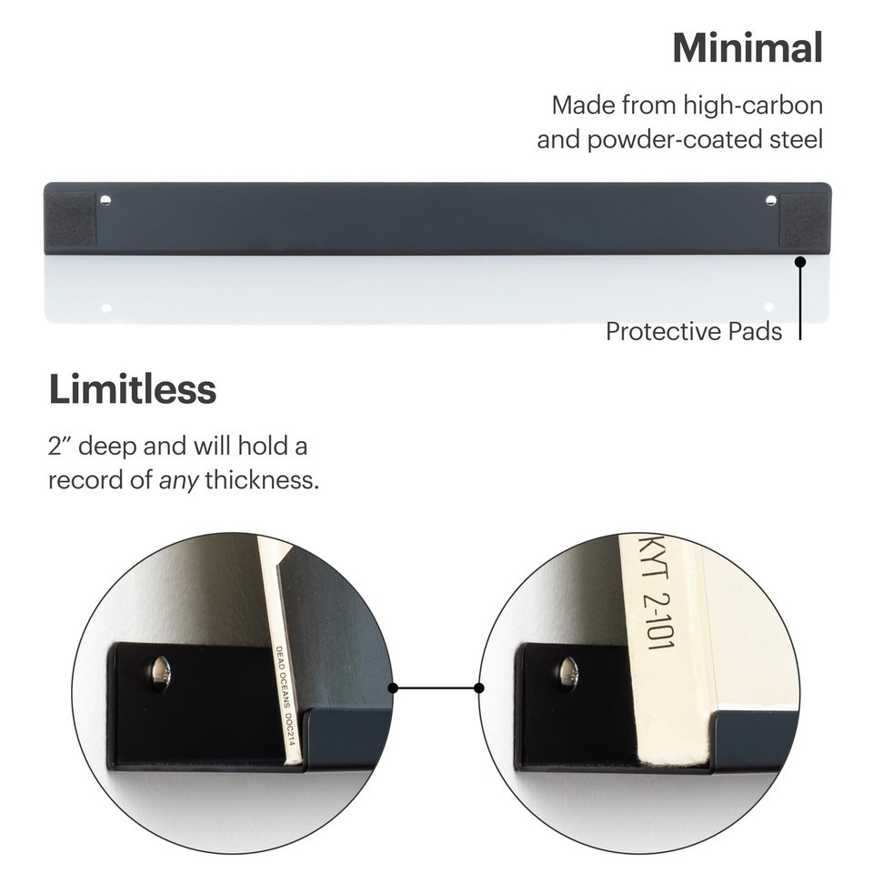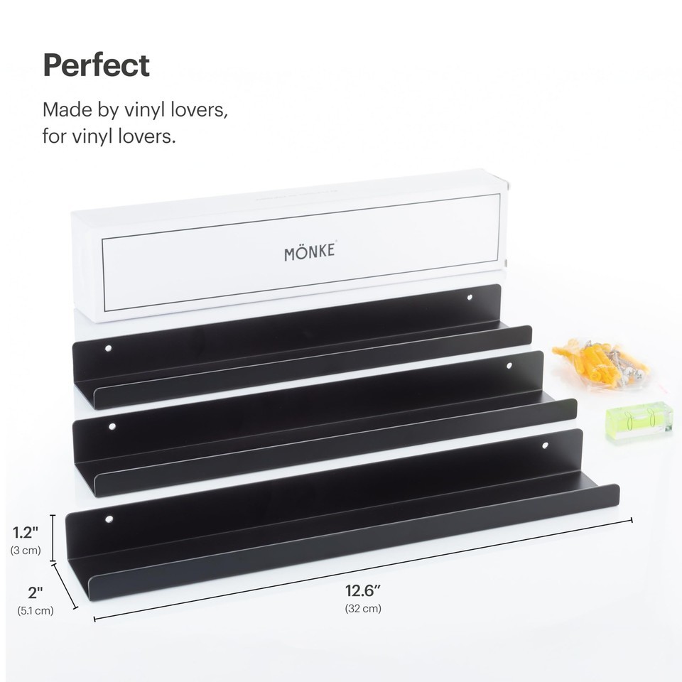 MÖNKE Vinyl Record Shelf - 3 Metal Display Shelves - Wall Mount Now-Playing Viny