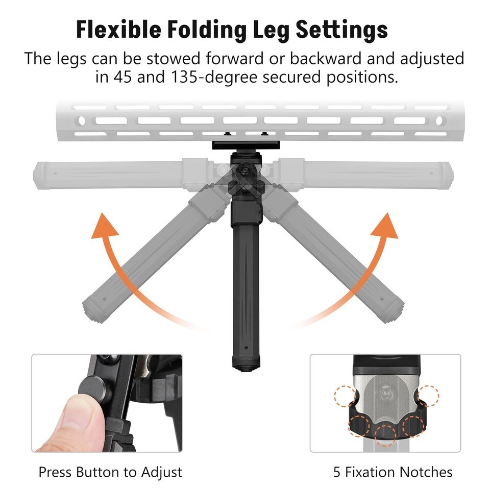 MidTen Tactical Bipod M-Rail Swivel Tilt Sturdy Height Adj. 7.8-10.6"