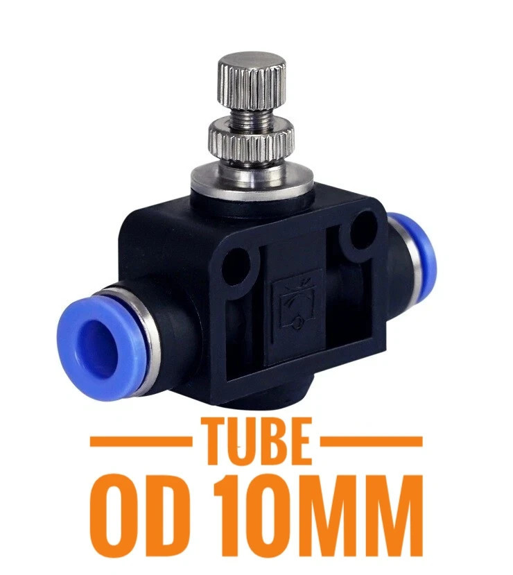 Pneumatic Air Flow Speed Control Valve Tube OD 10mm, Push In Fitting, 1 Pcs