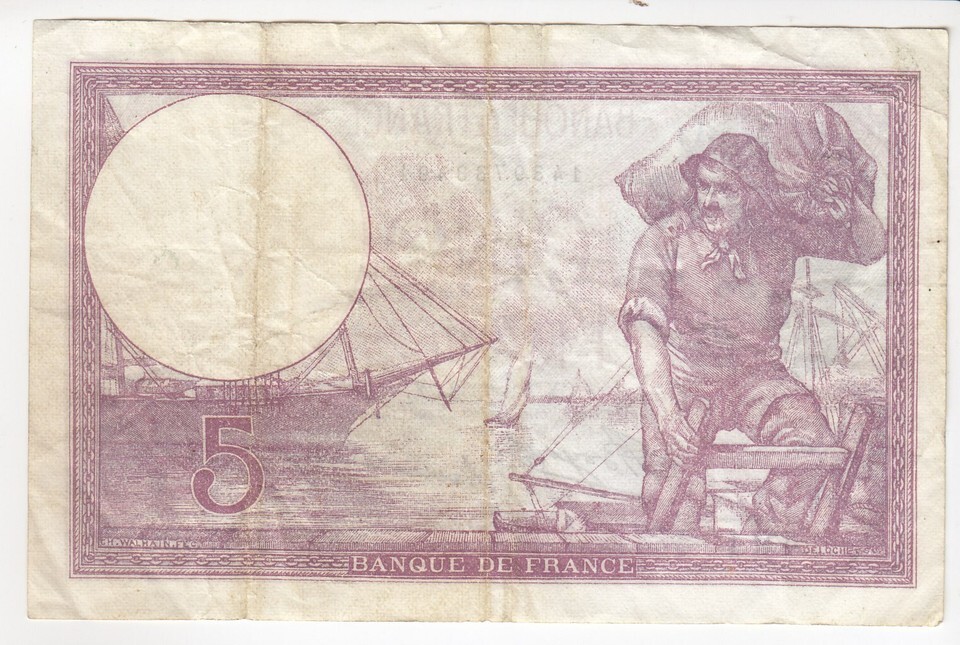France, 5 Francs, 1933, Bank of France, P72e, XF- show original title Origin...